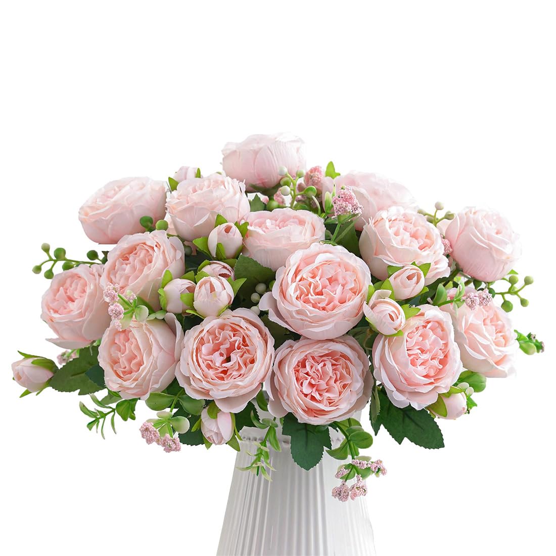 Bring dauerhafte Blütenpracht in dein Zuhause! Dieses 4er-Set mit künstlichen Rosensträußen sieht täuschend echt aus - aber ohne lästige Pflege. Jeder Strauß hat 7 wunderschöne Rosenblüten in zartem Champagner-Ton, insgesamt also 28 Blüten für eine üppige Dekoration. Hergestellt aus hochwertigem Seidenstoff mit flexiblem Metalldraht in den Stielen, lassen sich die Rosen ganz natürlich arrangieren. Kein Gießen, kein Düngen, kein Verwelken - einfach hinstellen und freuen! Falls die Blüten während des Transports etwas gedrückt wurden: Einfach mit dem Fön (30 cm Abstand) vorsichtig in Form bringen. Staubentfernung geht ganz easy mit kaltem Fön oder Mikrofasertuch. Perfekt fürs Wohnzimmer, die Küche, als Hochzeitsdeko oder für Partys. Auch super für Allergiker oder Berufstätige, die keine Zeit für Blumenpflege haben. Die kompakte Verpackung (30x20x3,5 cm) macht das Auspacken zum Kinderspiel. Verwandele jeden Raum in eine blühende Oase - ohne Aufwand und für immer!