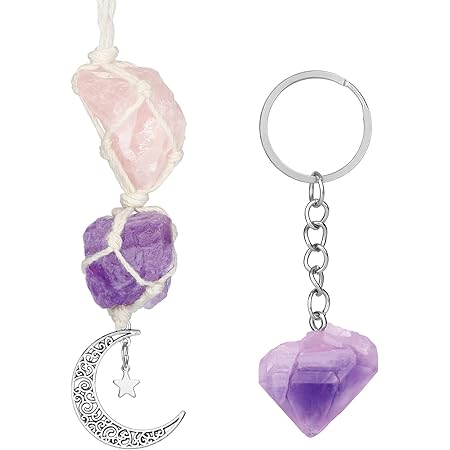 Auto Spiegel Anhänger Rosenquarz & Amethyst - Spirituelle Deko Für Rückspiegel
