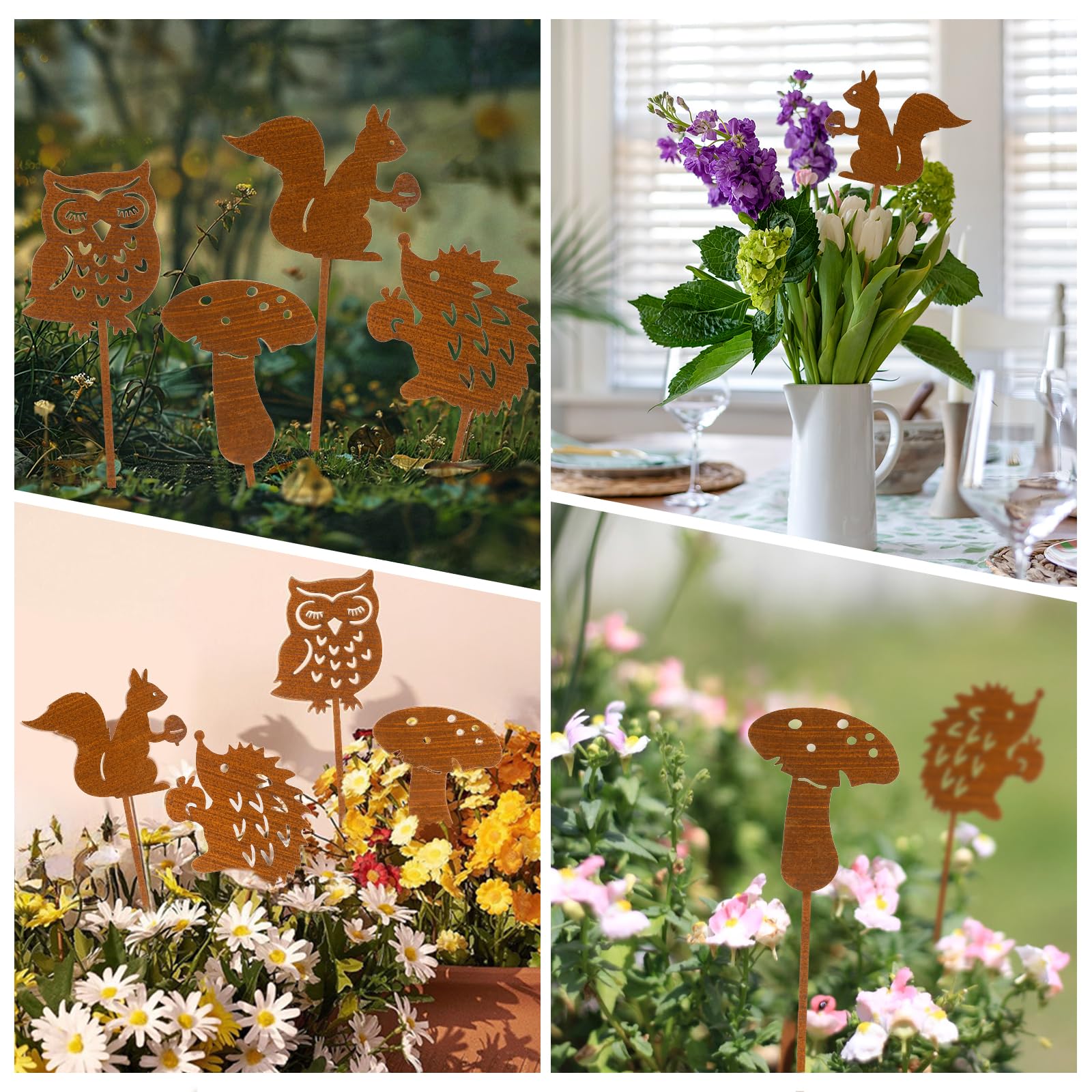 Wow, dieses Gartenstecker-Set in Rostoptik sieht ja mal richtig authentisch aus! 8 verschiedene Motive - Igel, Eulen, Eichhörnchen und Pilze - verleihen deinem Garten sofort herbstlichen Charme! Aus robustem Metall gefertigt, das Wind, Regen und Sonne problemlos standhält. Jeder Stecker ist etwa 25 cm hoch - die perfekte Größe für Beete, Wegränder oder Blumentöpfe! Die Installation ist denkbar einfach: Einfach die Metallstange in die Erde stecken - Handschuhe empfohlen, damit keine Rostflecken an den Händen bleiben! Die rustikale Rost-Optik passt super in jeden Garten und verbreitet diese gemütliche Vintage-Atmosphäre. Perfekt nicht nur für den Garten, sondern auch für Balkone, Terrassen oder als Geschenk zu Thanksgiving! Die verschiedenen Tiermotive machen richtig was her und bleiben auch nach mehreren Jahren noch schön. Einfach ein tolles Set, um dem Garten schnell und unkompliziert mehr Persönlichkeit zu verleihen! Ob zwischen Stauden, im Blumenbeet oder im Kübel - überall sehen diese Stecker super aus!