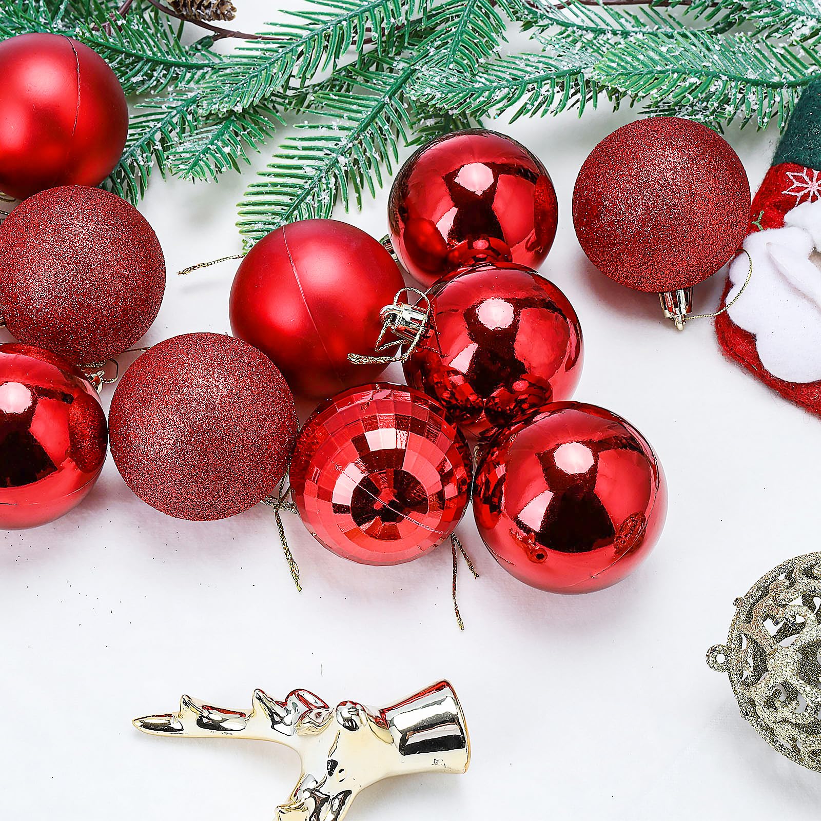 Mach deinen Weihnachtsbaum zum Highlight! Diese 24 roten Christbaumkugeln aus bruchfestem Kunststoff bringen festliche Stimmung in dein Zuhause. Mit 4 cm Durchmesser und praktischem Aufhängebügel sind sie super einfach zu befestigen – ob am Baum, am Kranz oder für DIY-Deko. Wiederverwendbar, sicher für Kinder und Haustiere und perfekt für drinnen und draußen. Ideal auch für Hochzeiten, Partys oder als Tischdekoration. Schaffe gemütliche Weihnachtsmomente mit der Familie – diese Kugeln sorgen für strahlende Augen und eine unvergessliche Atmosphäre!