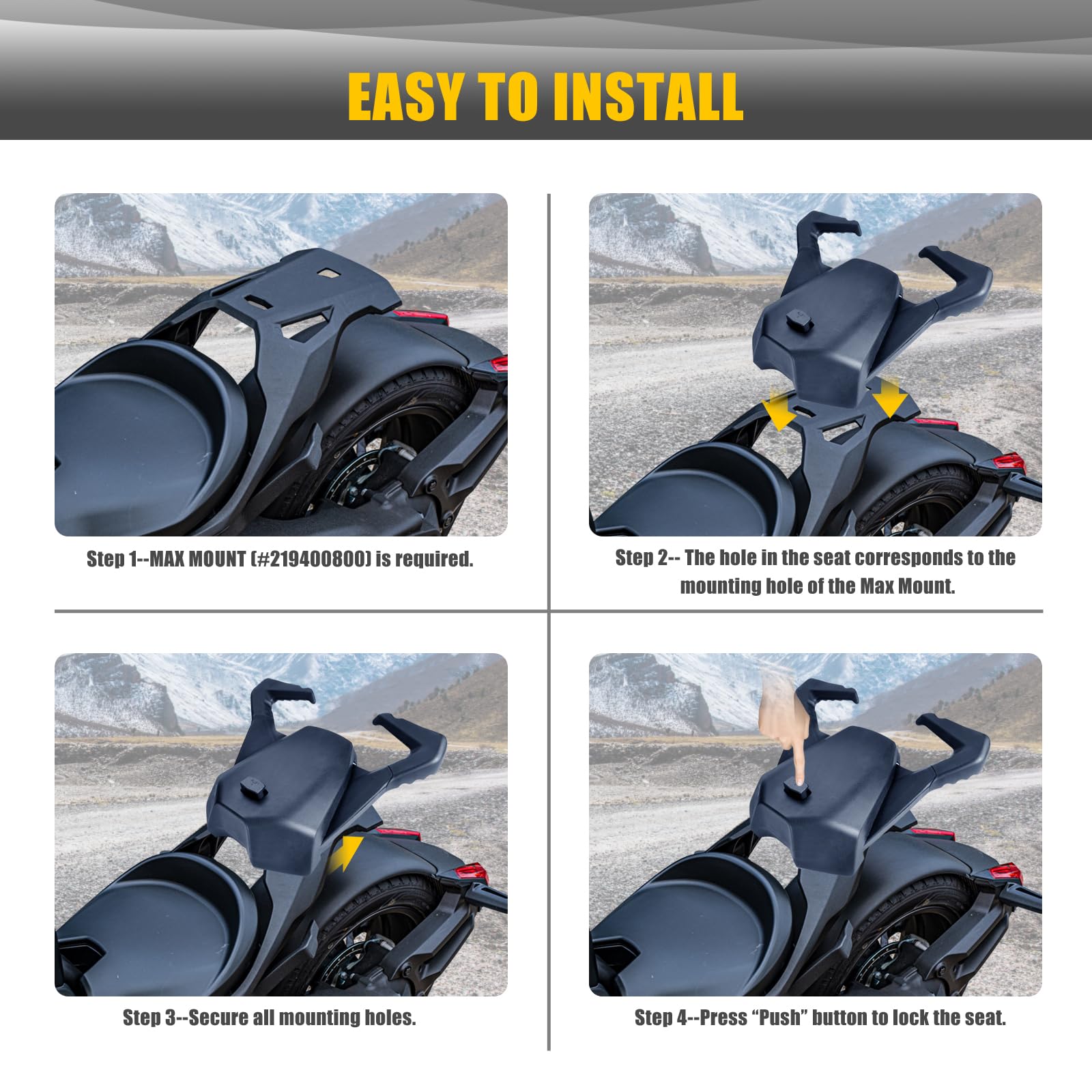 Der Sitz ist speziell für den Ryker gemacht und passt perfekt auf die Modelle 600, 900, Sport und Rally Edition von 2019 bis 2024. Mit der ergonomischen Form schmiegt er sich an deinen Körper an und hält dich auch bei sportlicher Fahrweise sicher an Ort und Stelle. Kein lästiges Rutschen mehr!
