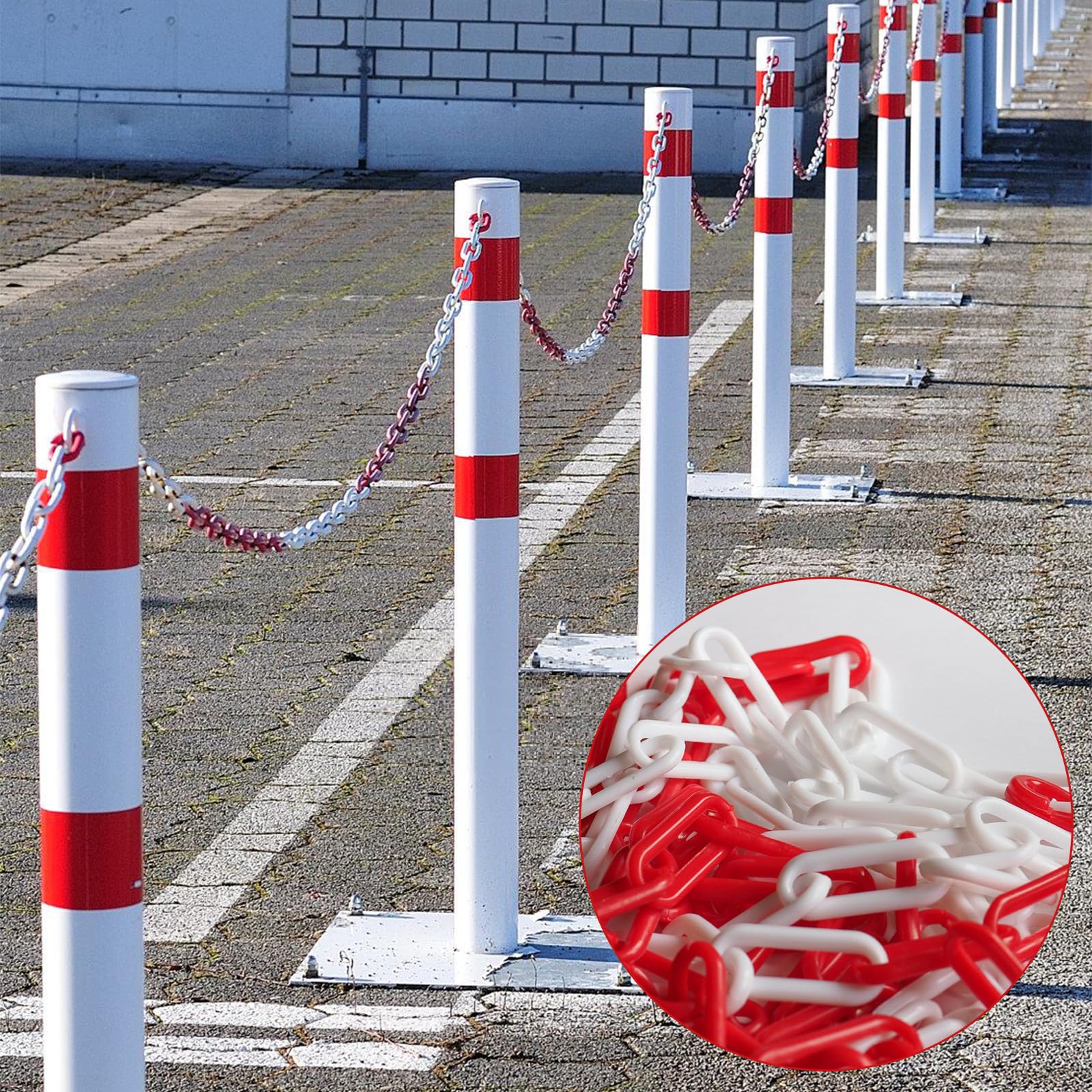 25m Absperrkette Rot-Weiß 6mm - Kunststoff Warnkette Für Baustellen & Sicherheitsabsperrungen