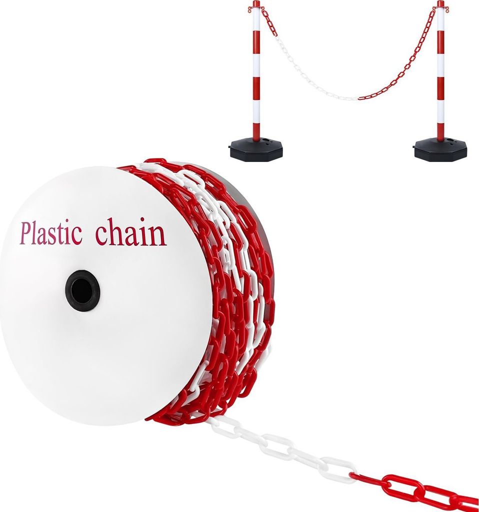 • 25m Absperrkette Rot-Weiß 6mm - Kunststoff Warnkette Für Baustellen & Sicherheitsabsperrungen