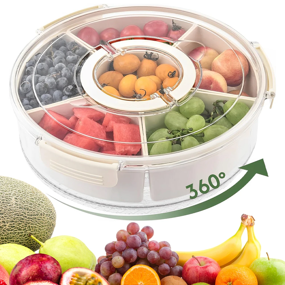 • Dreh-Snackbox 6-fach - Rotierbare Snackbox Mit Deckel 28x28cm, Für Obst & Party