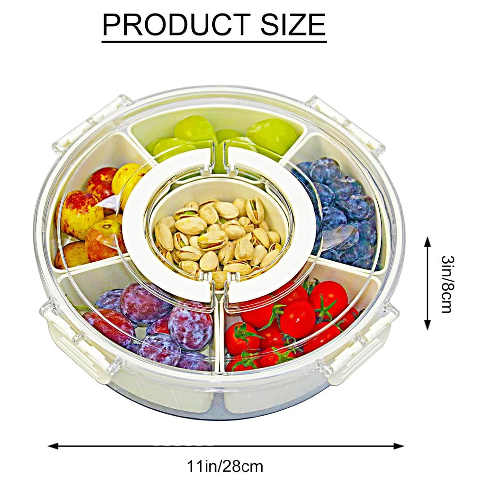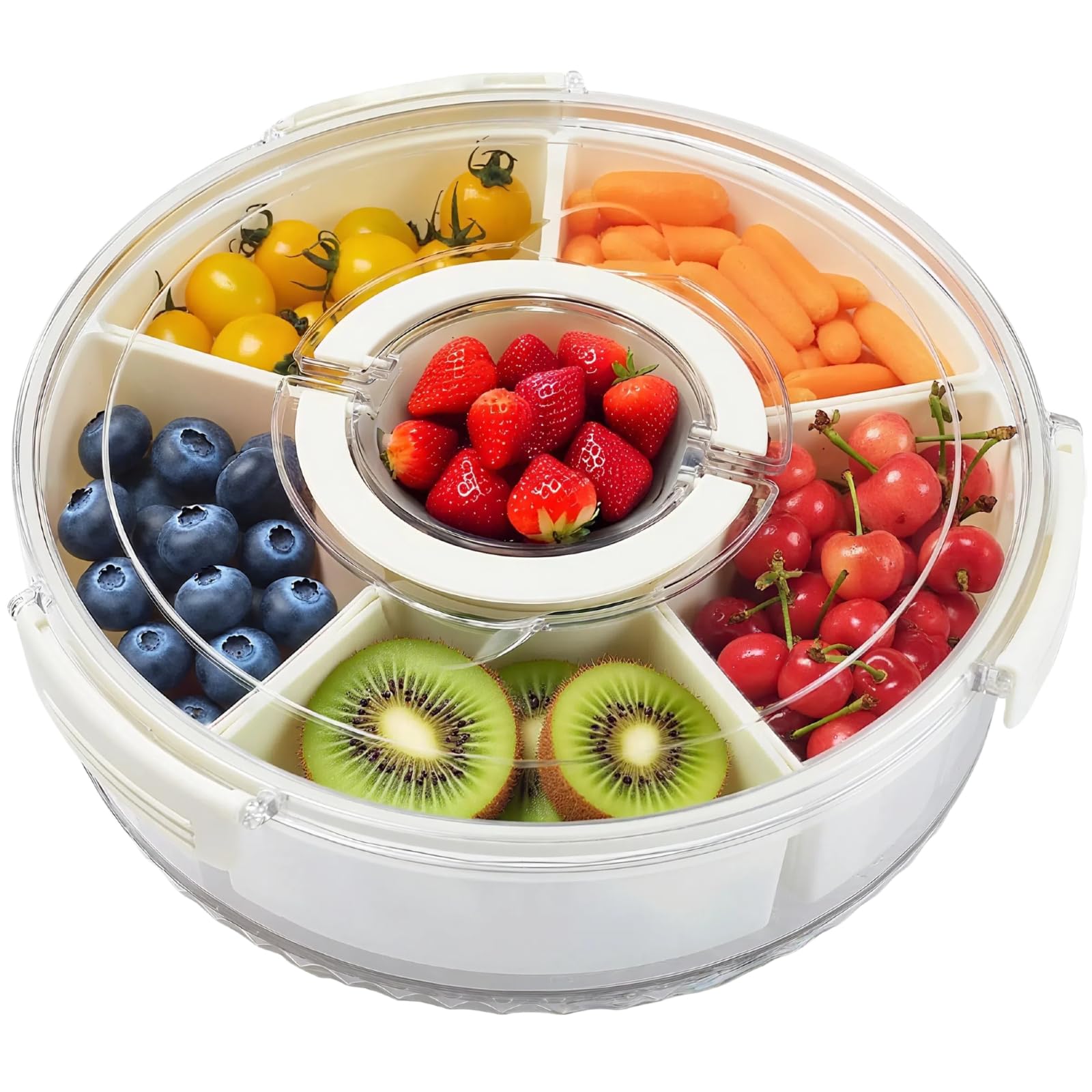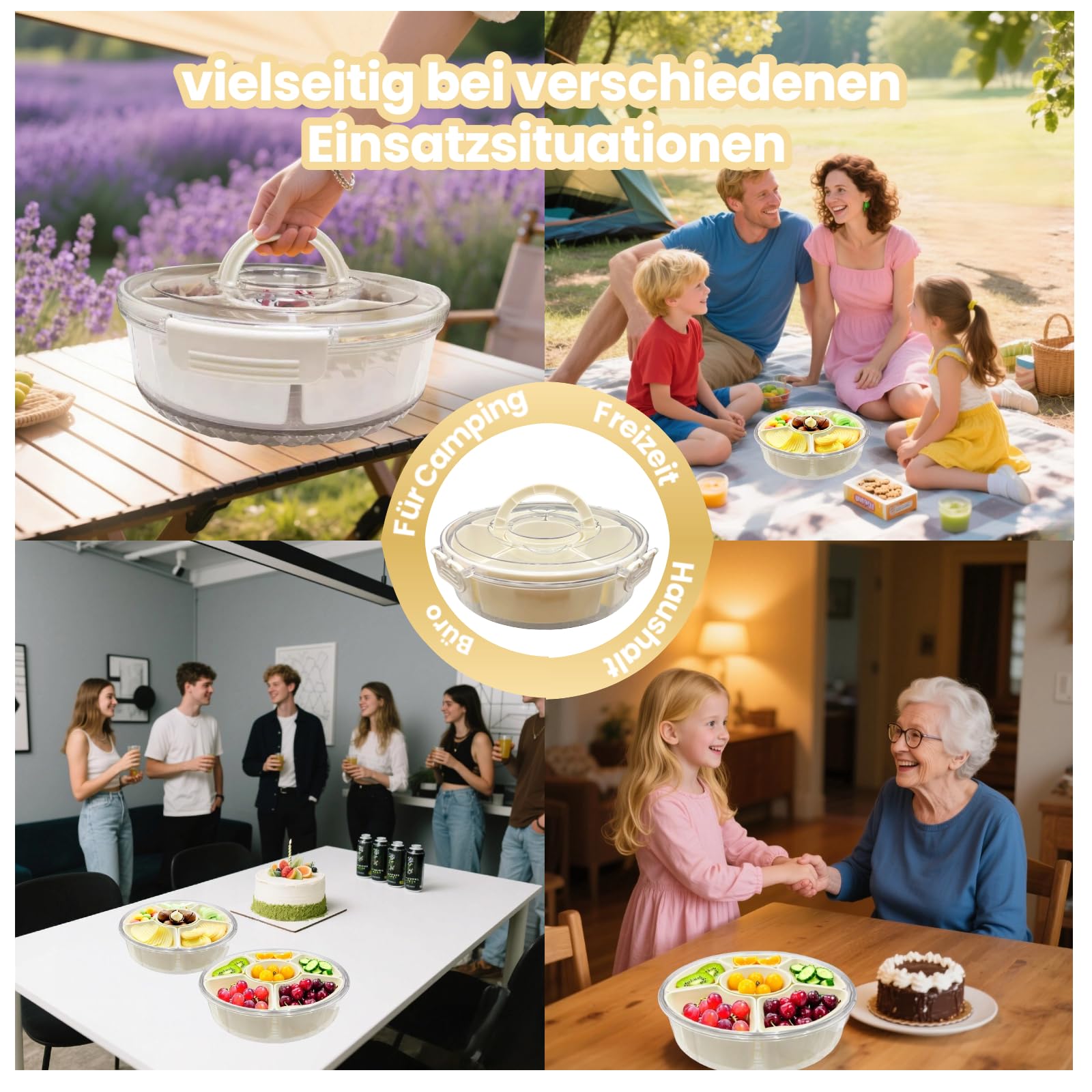Perfekte Snackbox für Partys und Picknicks! 6 abnehmbare Fächer - ideal für Obst, Nüsse, Dip oder Gewürze. Drehbar um 360° - jeder kommt bequem ran. Mit transparentem Deckel - schützt vor Insekten und Staub. Maße: 28x28cm - großzügig aber handlich. Mit Tragegriff - einfach zu transportieren. Dichtender Ring - nichts läuft aus. Einfach zu reinigen - Fächer herausnehmbar. Super für Kindergeburtstage, Gartenpartys oder Büro-Snacks. Mach deine nächste Party zum Hit!