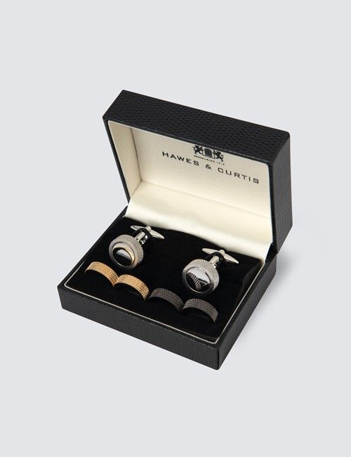 Stylische Manschettenknöpfe mit dem besonderen Etwas! Das blaue Design mit der rotierenden Weltkugel sieht einfach edel aus. Aus robustem Messing gefertigt, messen sie 25x20 mm und werden in einer schicken Box geliefert. Perfekt fürs Business-Hemd oder besondere Anlässe. Collar and Cuffs London steht für Qualität und gutes Preis-Leistungs-Verhältnis. Ein Accessoire, das garantiert auffällt - ob im Meeting oder auf der Hochzeit. Einfach anstecken und den Look aufwerten!