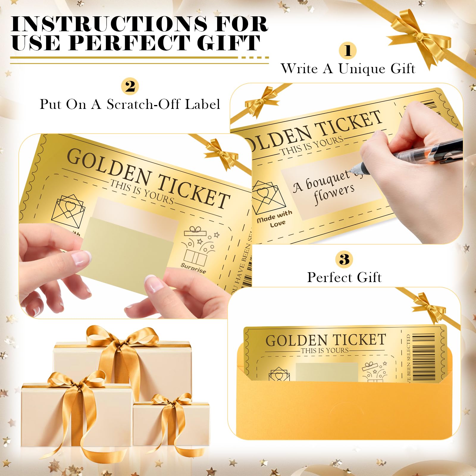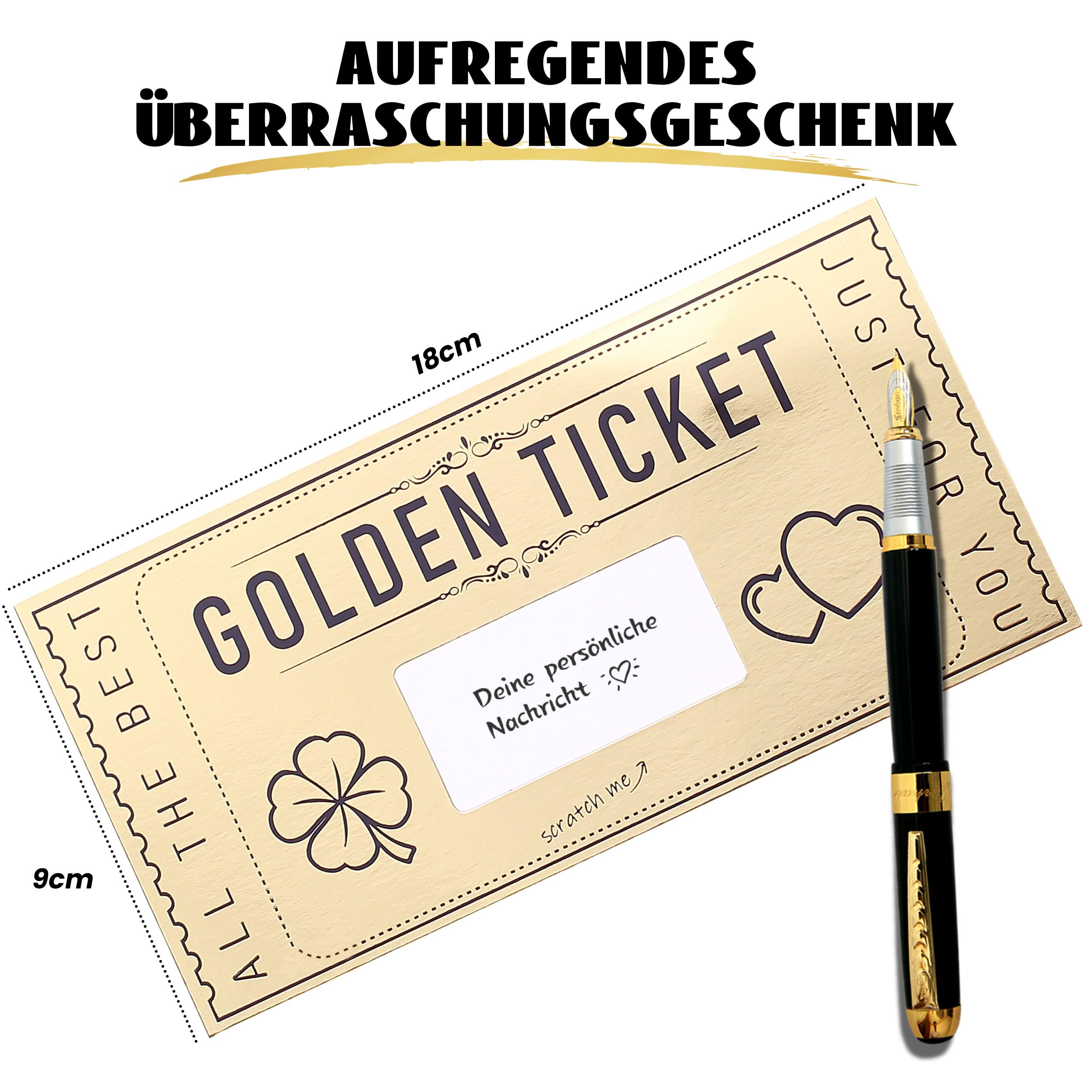 Mach Geschenke zu einem unvergesslichen Erlebnis mit diesen coolen Golden Ticket Rubbelkarten! Das Set enthält 6 Karten (20x9cm), 6 goldene Rubbelaufkleber und 6 passende Umschläge (21x10cm). Einfach deine persönliche Botschaft auf die Karte schreiben, den Rubbelsticker darüber kleben - und schon ist die Überraschung perfekt!