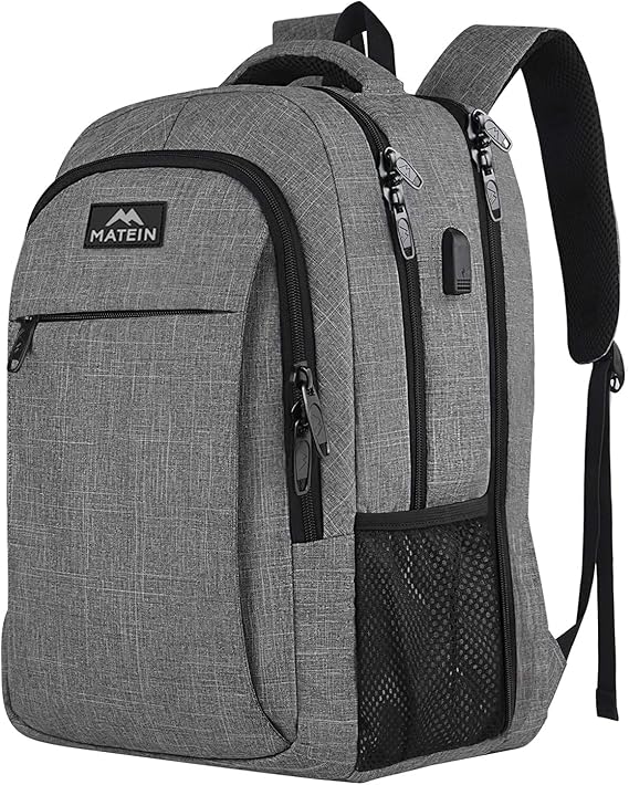 Der perfekte Begleiter für Arbeit, Studium und Reisen! Dieser MATEIN Rucksack bietet Platz für Laptops bis 17 Zoll und hat mit 7 Taschen genug Stauraum für alles, was du brauchst. Das besondere Highlight: Der integrierte USB-Anschluss ermöglicht dir das Laden deiner Geräte unterwegs - einfach Powerbank ins Innere und Kabel nach außen. Die TSA-Funktion erleichtert die Sicherheitskontrolle am Flughafen - Laptop muss nicht mehr ausgepackt werden! Wasserdichtes Polyestergewebe schützt deine Sachen auch bei Regen. Mit ergonomischen, atmungsaktiven Schultergurten und verstellbarem Trolley-Gurt für entspanntes Reisen. Das Anti-Diebstahl-Fach auf der Rückseite bewahrt deine Wertsachen sicher auf. Ob als Business-Rucksack, Schulrucksack oder Reisebegleiter - hier stimmt einfach alles!
