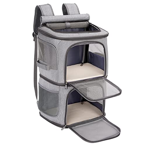 Boah, dieser Haustier-Rucksack ist ja mal genial! Mit der einzigartigen Doppelkabine kannst du entweder zwei kleine Haustiere transportieren oder ein größeres Tier in der unteren Kabine und oben deine Sachen unterbringen. Die Trennwand ist entfernbar - so schaffst du mehr Platz für mittelgroße Tiere. 7 Netzfenster sorgen für super Belüftung von allen Seiten, dein Liebling kann gut atmen und alles beobachten. Mit verstellbaren Schultergurten, Brust- und Taillengurt sitzt der Rucksack bequem und stabil. Die integrierte Matte hat sogar ein stabiles Holzbrett für extra Stabilität. Zwei Seitentaschen für Näpfe und Wasserflaschen nicht vergessen! Wichtig: Vor dem Kauf dein Haustier genau messen - nicht nur aufs Gewicht achten! Für Flugreisen vorher bei der Airline nachfragen, ob die Größe passt. Perfekt für Reisen, Wandern oder Camping mit deinem Vierbeiner!