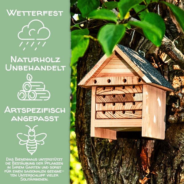 Das perfekte Geschenk für den Ruhestand - sinnvoll und persönlich! Dieses liebevoll in Deutschland gefertigte Insektenhotel wird mit dem Namen des Jubilars graviert - eine bleibende Erinnerung. Aus robustem Erlen- und Kiefernholz, wetterfest und langlebig. Die unterschiedlich großen Bohrungen bieten sicheren Unterschlupf für Wildbienen und andere nützliche Insekten. Mit 19x19x10,5cm die ideale Größe für Garten oder Balkon. Einfach nach Süden ausgerichtet aufhängen - schon ziehen die ersten Untermieter ein. Damit tust du nicht nur dem Ruheständler, sondern auch der Umwelt etwas Gutes. Wildbienen sind wichtige Bestäuber und finden immer weniger natürliche Nistplätze. Ein Geschenk, das wirklich von Herzen kommt und nachhaltig Freude bereitet. Umweltbewusst und persönlich - besser geht's nicht!
