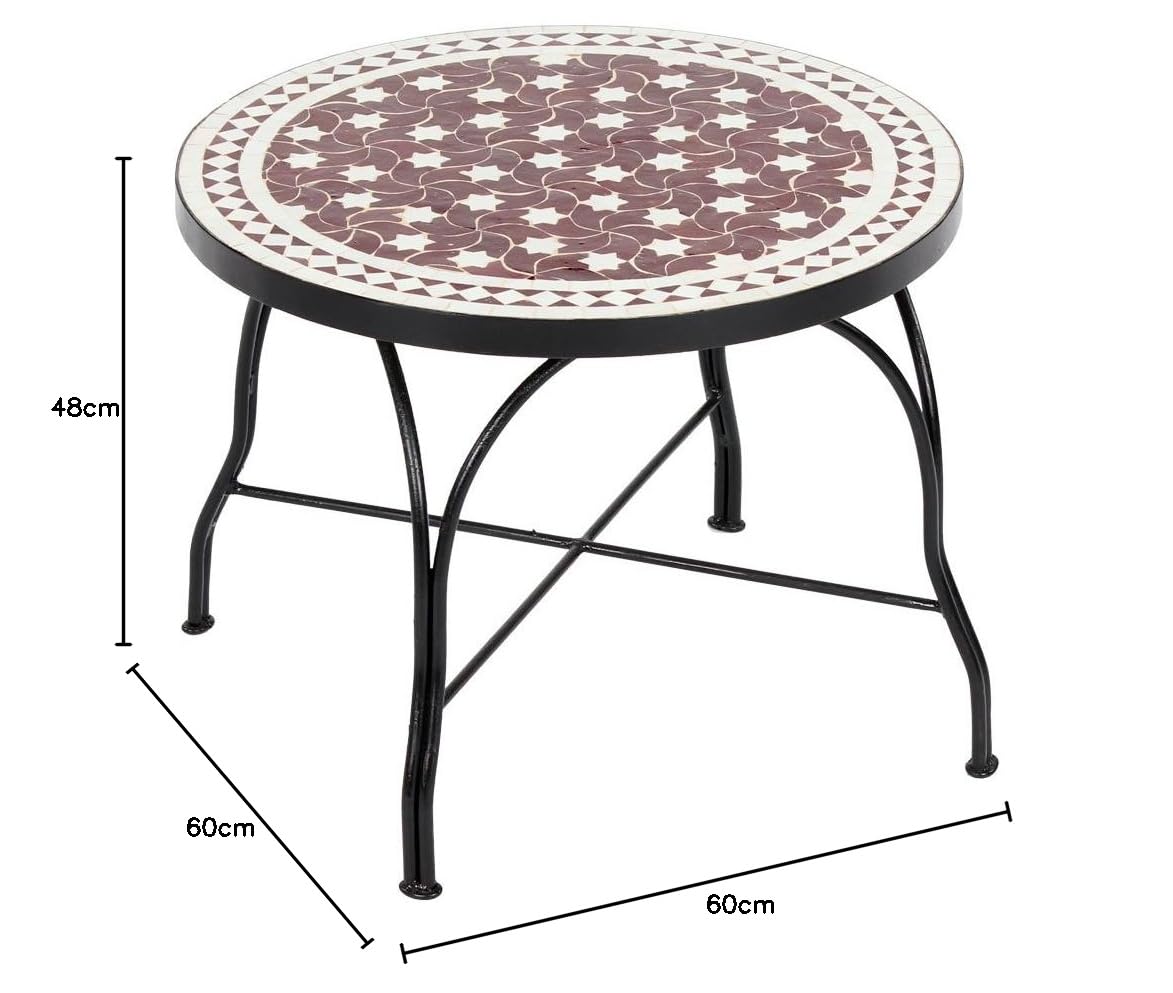 Ein absolutes Kunstwerk für dein Zuhause! Dieser handgefertigte marokkanische Mosaiktisch 'Maar' bringt orientalischen Charme in deine Wohnung oder Garten. Mit 60cm Durchmesser und 75cm Höhe ist er perfekt als Beistelltisch oder für die Terrasse. Über 450 einzelne Keramiksteine in grün/weiß wurden von erfahrenen Handwerkern liebevoll zusammengesetzt. Jeder Tisch ist ein Unikat mit kleinen Unregelmäßigkeiten, die seinen Charakter unterstreichen. Das schwarze Eisengestell und die stabile Betonplatte (insgesamt 22,5kg) machen ihn robust und langlebig. Wetterfest, aber nicht frostsicher - also im Winter besser reinholen. Die Lieferung erfolgt in zwei Paketen (Platte und Gestell), die manchmal an unterschiedlichen Tagen ankommen. Echte Handwerkskunst aus Marokko!
