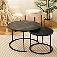 Total praktisch und super stylisch! Dieses 2er-Set runder Couchtische von OLEYLUCKIDEA bringt Flexibilität in dein Wohnzimmer. Das geniale Schachtel-Design spart enorm Platz - einfach ineinander stellen wenn nicht benötigt. Der große Tisch misst 80cm Durchmesser bei 45cm Höhe, der kleine 60cm bei 35cm Höhe. Perfekt abgestimmt für unterschiedliche Nutzung! Die Tischplatte in schicker Walnuss-Optik kombiniert mit dem mattschwarzen Metallgestell sieht einfach klasse aus und passt zu modernen wie auch industriellen Einrichtungsstilen. Aus hochwertiger Spanplatte und stabilen Stahlbeinen gefertigt wackelt hier nichts! Ideal als Couchtisch, Beistelltisch, Nachttisch oder für den Balkon. Wenn Besuch kommt einfach auseinander nehmen - so hast du immer genug Abstellfläche. Einfach mal ausprobieren, diese Tische werden dein Wohnzimmer-Leben revolutionieren!