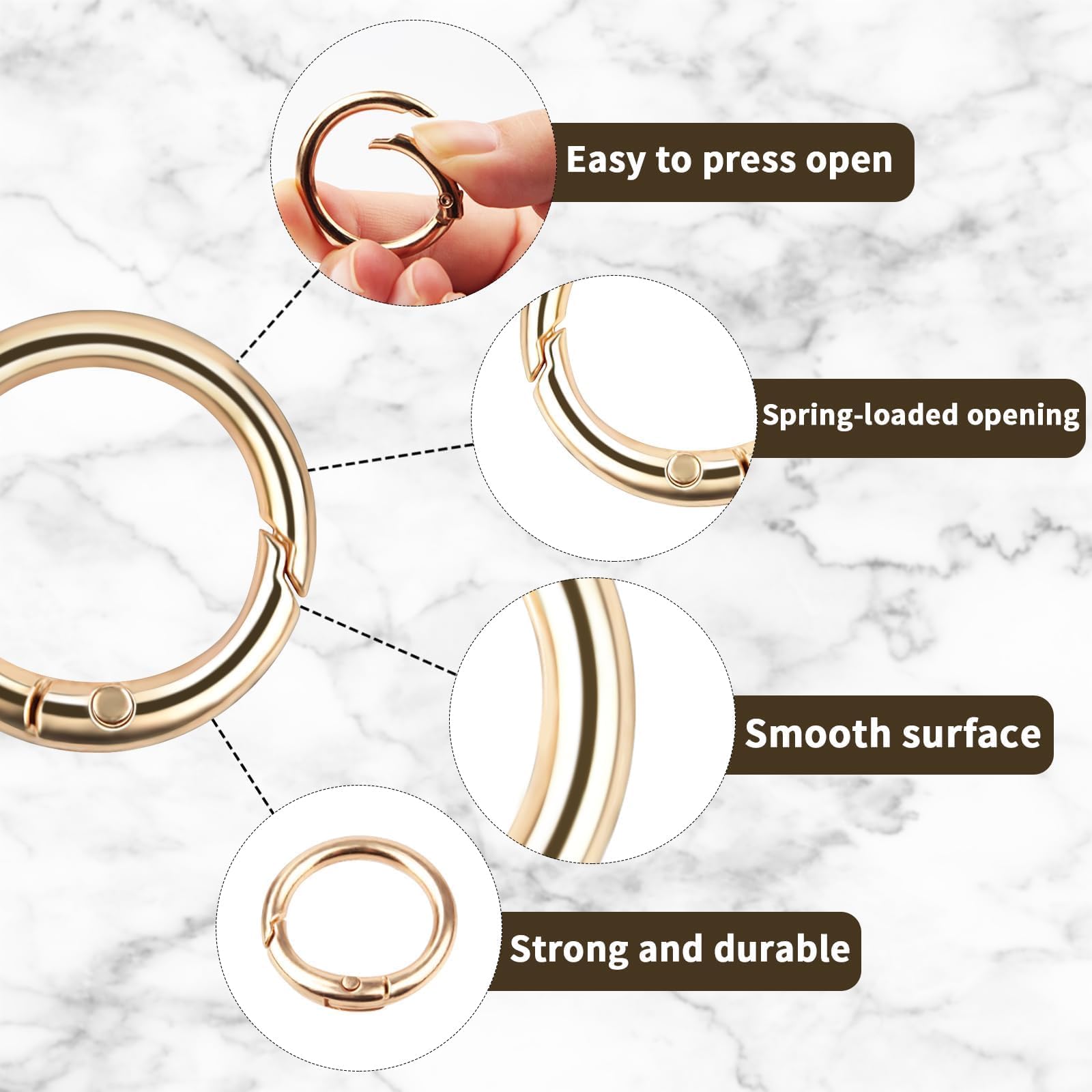 Brauchst du praktische Karabiner für unterwegs? Diese 12 runden Haken aus Zinklegierung sind super vielseitig! Mit 60mm Außendurchmesser und 50mm Innendurchmesser passen sie perfekt an Rucksäcke, Schlüsselbund oder Hundehalsbänder. Die silberne Oberfläche ist glatt und kratzt nicht - echt klasse verarbeitet! Dank der Feder öffnen und schließen sie sich super easy. Und das Beste: Sie wiegen nur 19g pro Stück, also merkst du sie kaum in der Tasche. Perfekt für Camping, Wandern oder Angeln, aber Achtung: Nicht zum Klettern geeignet! Maximal 1,5kg Tragkraft pro Karabiner. Ob du jetzt deine Schlüssel organisieren willst oder deine Tasche aufhängen möchtest - mit diesen Teilen hast du immer eine praktische Lösung parat. Die halten ewig und rosten nicht, selbst bei Regenwetter. Einfach mal ausprobieren!