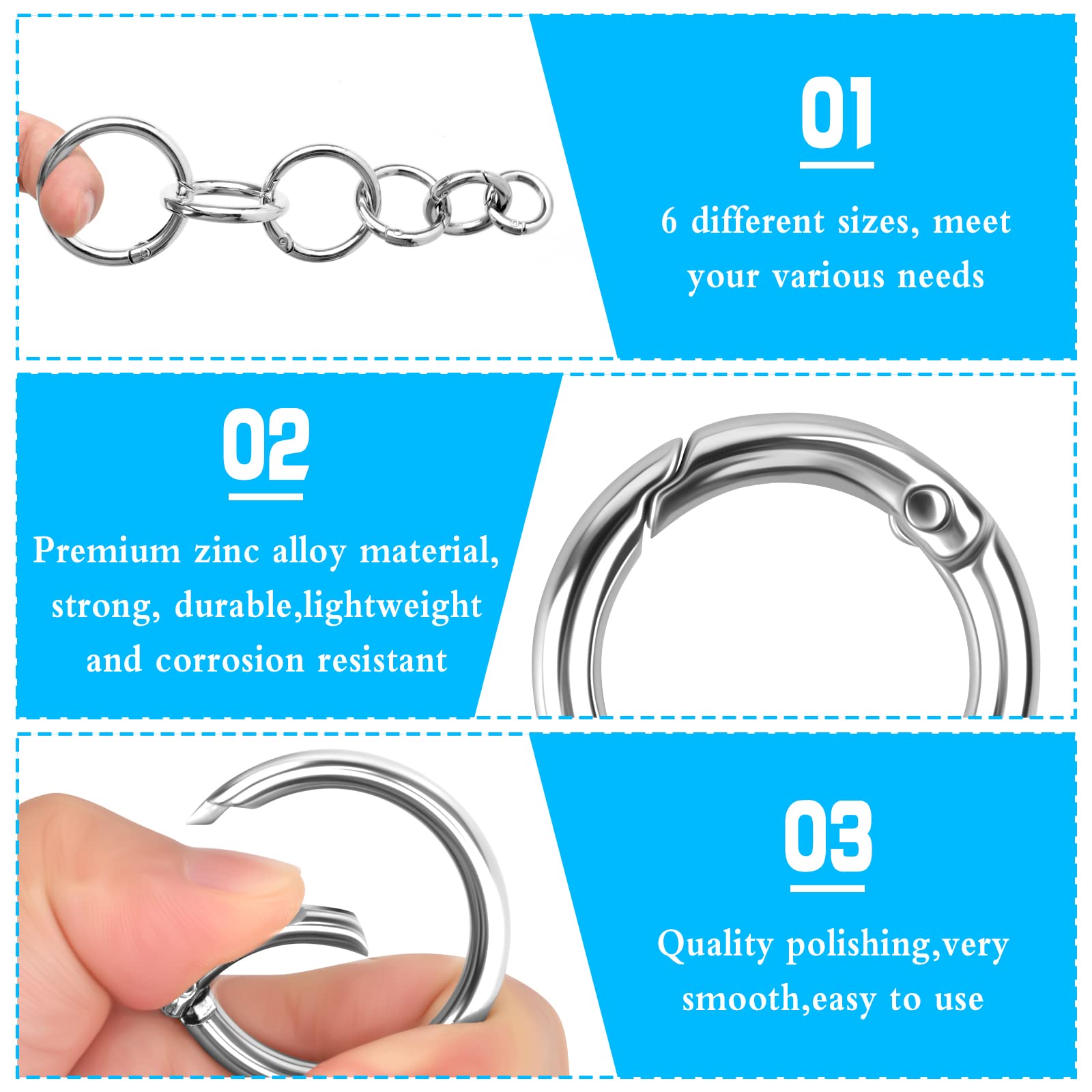 • 6 Stück Runde Karabinerhaken 60mm - Zinklegierung Für Schlüssel, Rucksäcke & DIY