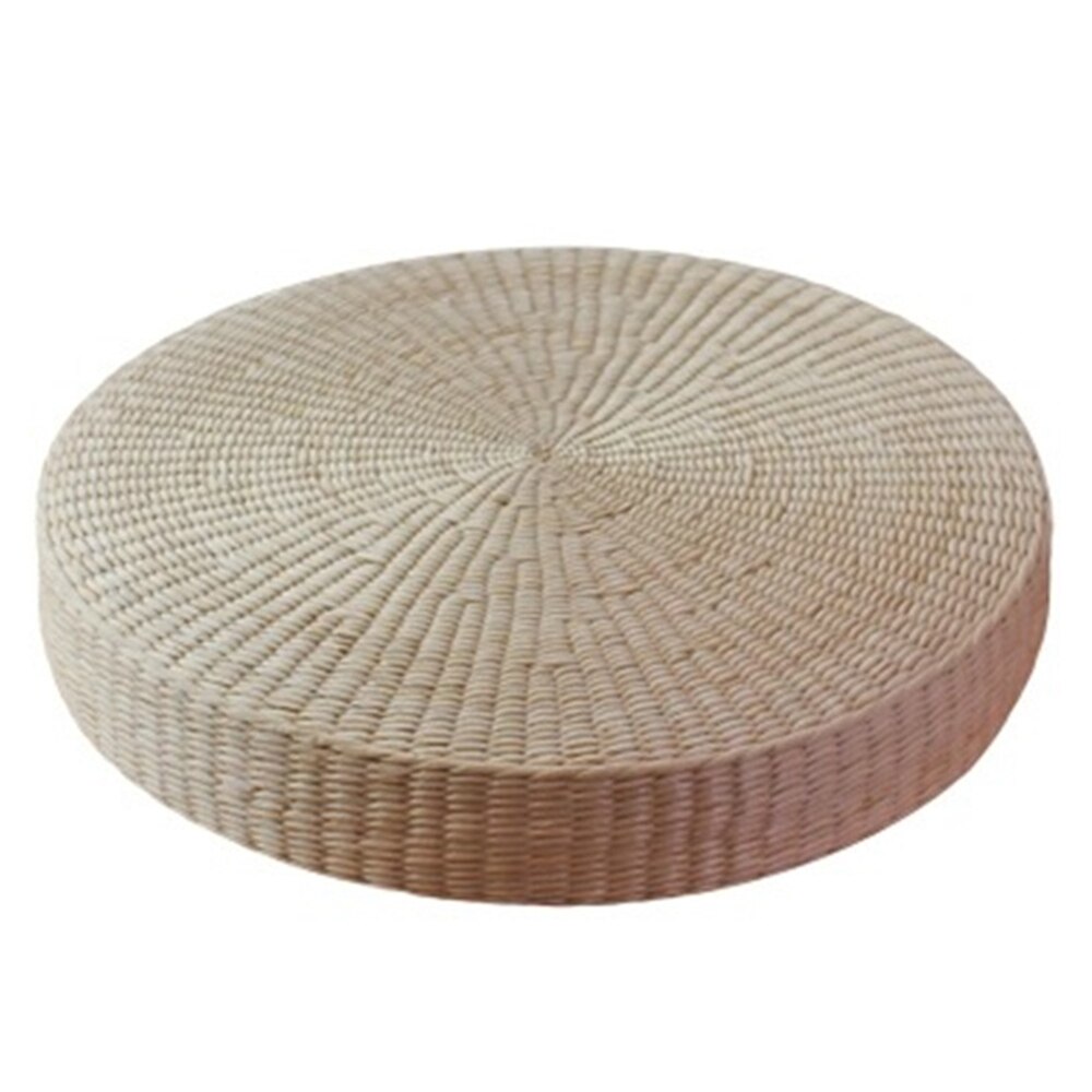 • Kueohse Rundes Sitzkissen 40cm - Strohgeflecht Bodenkissen Yoga Matte