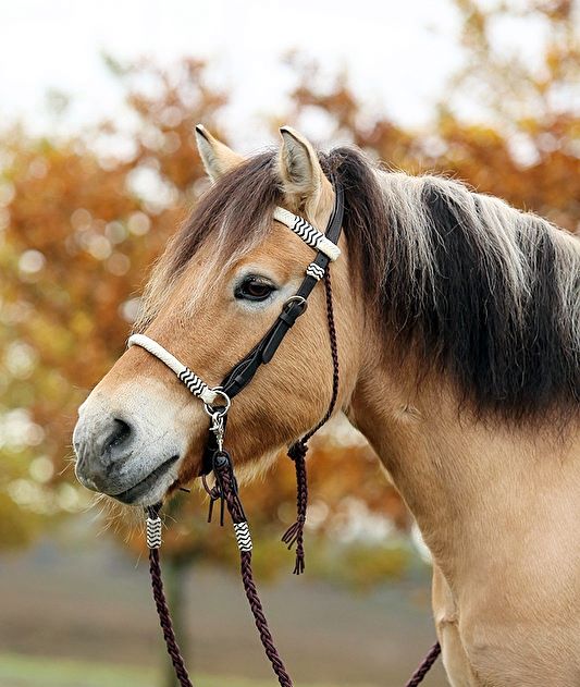 Sanfte Kommunikation mit deinem Pferd! Diese Barefoot Acorn Zügel mit federförmigen Lederklatschen ermöglichen eine pferdefreundliche Einwirkung auf den Hals. Aus stabilem, rundgeflochtenem Seil das super in der Hand liegt. Mit abnehmbaren Snap-Haken für flexible Nutzung und schönen Rohhaut-Verzierungen in zwei Farben. Perfekt für alle, die auf sanfte, gebisslose Zäumung setzen. Passt nicht nur zum Acorn Kopfstück, sondern auch zu anderen Modellen. Für eine entspannte und vertrauensvolle Reitweise - dein Pferd wird es dir danken!