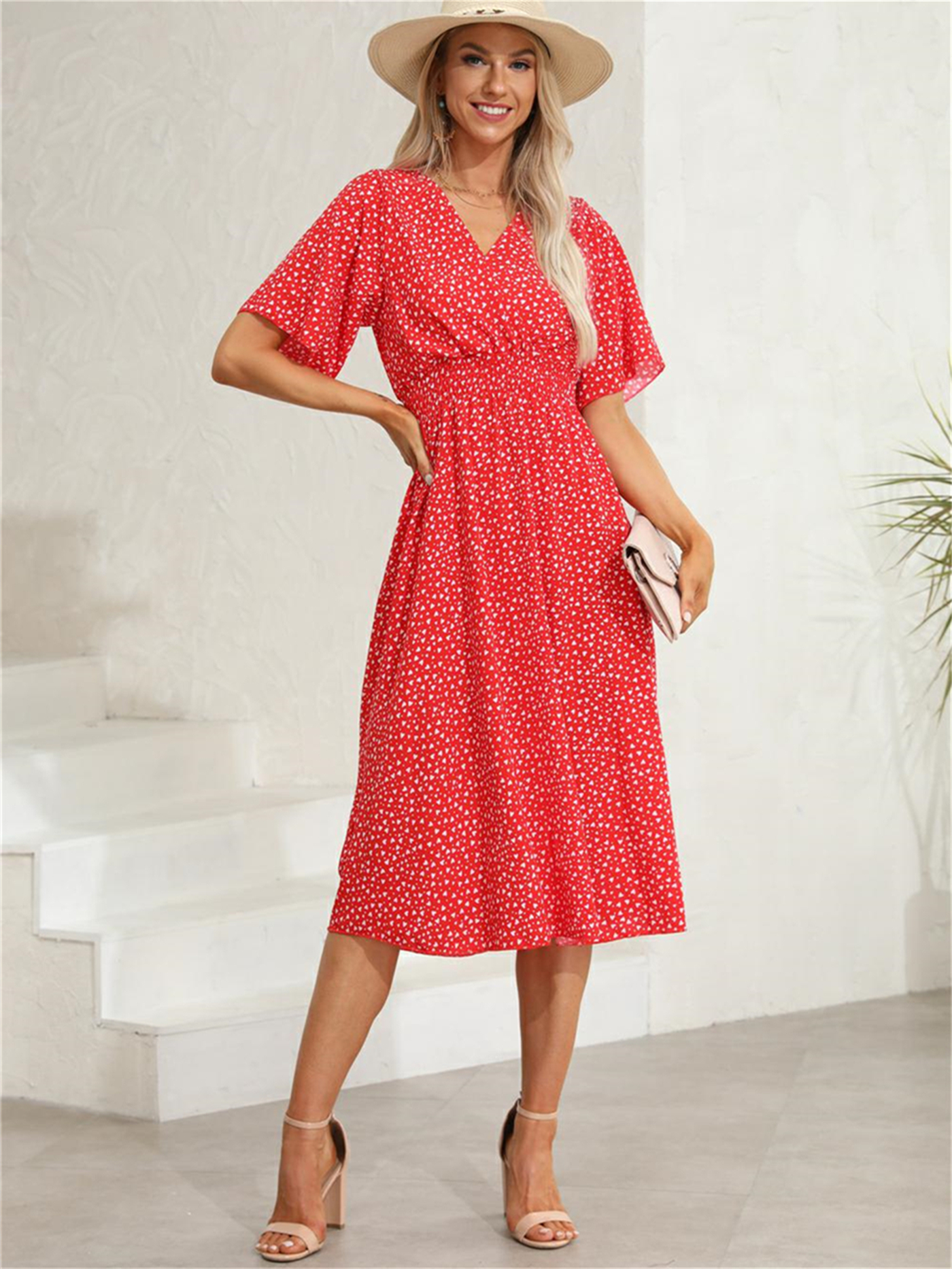 • Damen Kleid Floral Print Rundhals - Kurzarm Hohe Taille Elegant
