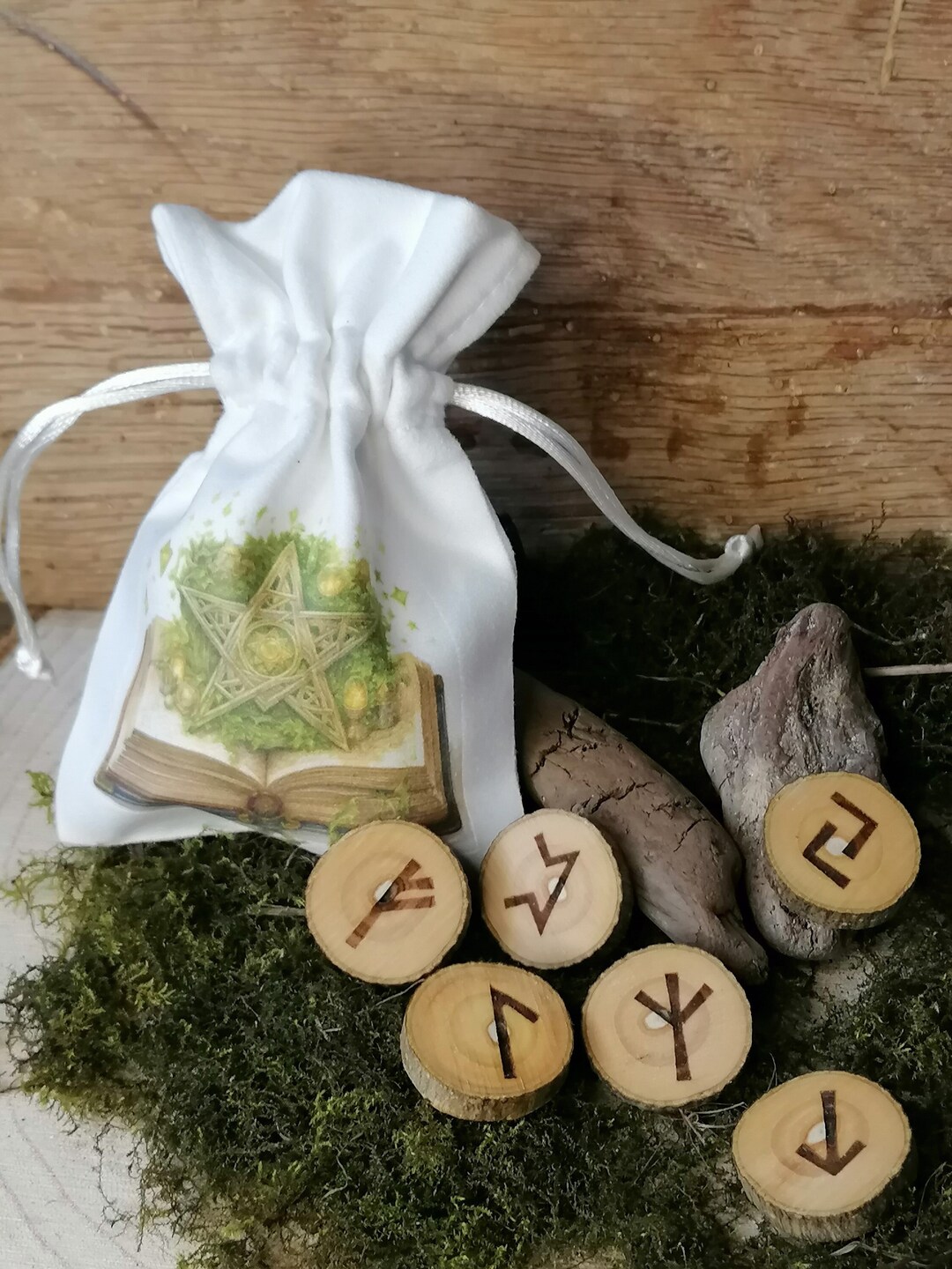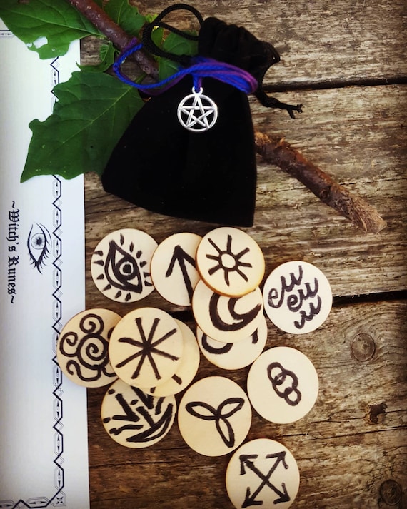 Holz Runen Set - Mythologie Meditation Mit Aufbewahrungsbeutel