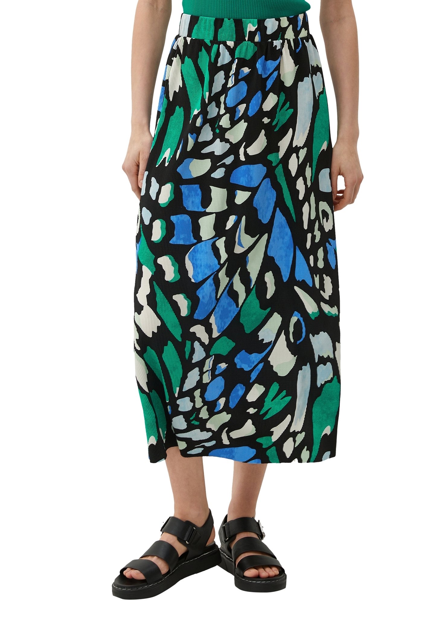Dieser s.Oliver Denimrock ist absolut im Trend! In praktischer Midilänge sitzt er perfekt und gibt dir genug Bewegungsfreiheit. Der auffällige Leo-Print verleiht dem Rock einen wilden, rockigen Touch - perfekt für alle, die sich nicht mit langweiliger Kleidung zufriedengeben wollen. Mit dem klassischen 5-Pocket-Design hat dieser Rock nicht nur Stil, sondern auch praktische Taschen für deine Kleinigkeiten. Der Reißverschluss und Knopfverschluss sorgen für bequemes An- und Ausziehen. Der Mid-Rise Bund sitzt angenehm an der Taille und betont deine Figur auf schmeichelhafte Weise. Aus einem bequemen Baumwollmix gefertigt, fühlt sich der Rock weich auf der Haut an und ist angenehm zu tragen. Der Allover-Print mit dem Animal-Muster ist das absolute Highlight dieses Rocks. Ob zu einem lässigen T-Shirt und Sneakern für den Tag oder zu einem schicken Top und Stiefeletten für den Abend - dieser Rock ist wahnsinnig vielseitig kombinierbar. Die Gürtelschlaufen geben dir die Möglichkeit, den Rock mit einem coolen Gürtel zu stylen. Ein Must-Have für jede modebewusste Frau, die ihrem Outfit eine Portion Individualität verleihen möchte. Ob für den Alltag, die Arbeit oder eine Party - mit diesem s.Oliver Denimrock machst du immer eine gute Figur!