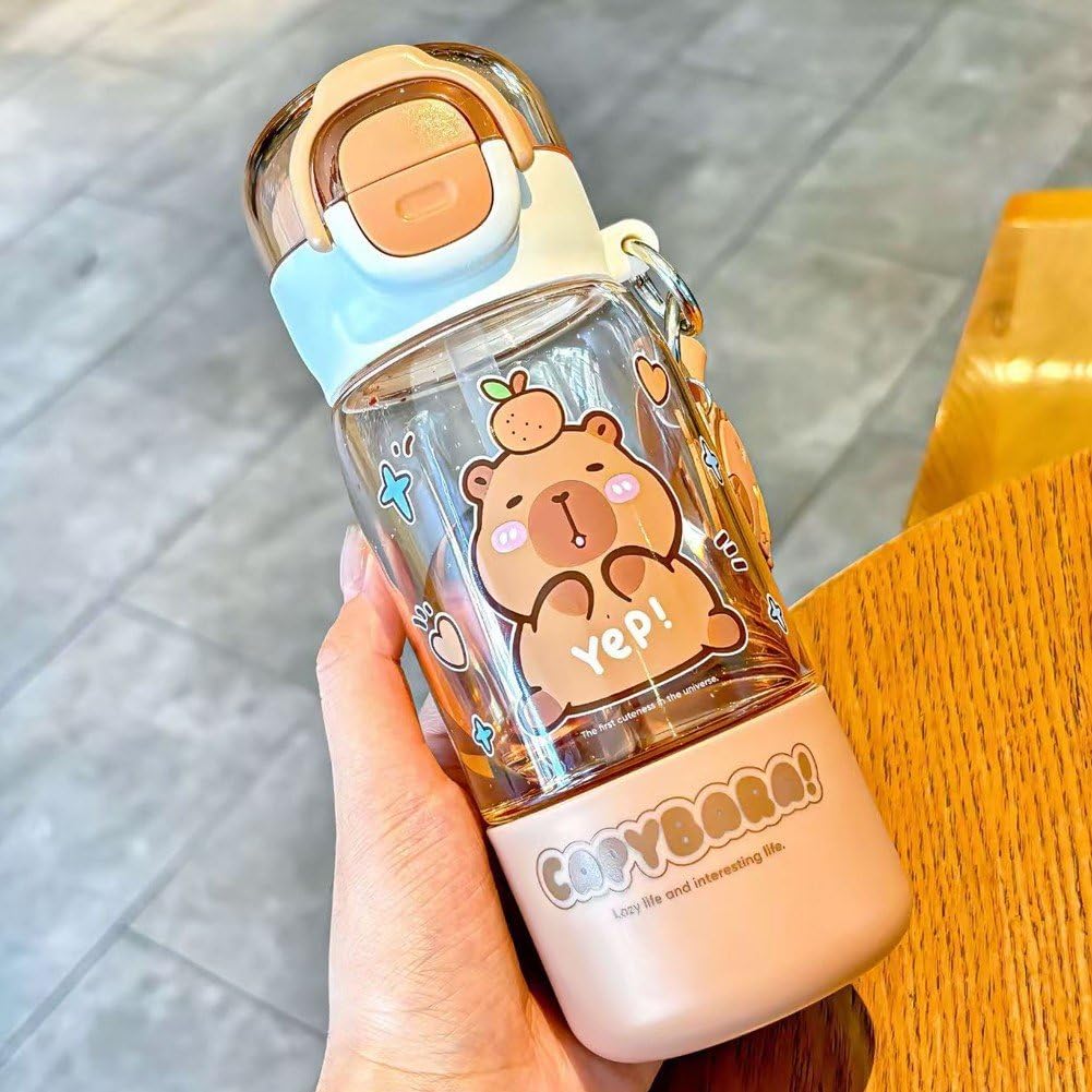 JXAXD Capybara Trinkflasche 700ml - Süße Auslaufschutz Flasche Mit Strohhalm Für Kinder