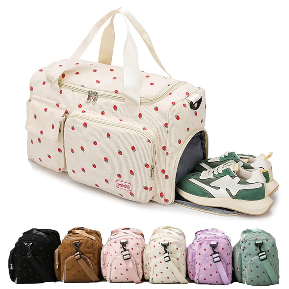 Hey, diese mega süße Sporttasche mit Erdbeer-Print ist dein neuer Lieblingsbegleiter fürs Fitnessstudio, Schwimmbad oder Wochenendtrips! Aus weichem Kordsamt gefertigt, fühlt sie sich nicht nur toll an, sondern ist auch super praktisch. Mit 48x24x27cm hast du genug Platz für all deine Sport-Sachen - Handtuch, Wechselkleidung, Schuhe und mehr. Das coole Extra: Ein separates Schuhfach, damit deine Turnschuhe nicht alles vollschmieren, und ein Nassfach für deinen Badeanzug oder nasses Zeug. In 6 knalligen Farben erhältlich - da findest du sicher deinen Favoriten! Perfekt für Yoga, Gym, Strand oder einfach als stylische Alltagstasche. Und das Beste: Sie ist waschbar und lässt sich platzsparend zusammenfalten. Egal ob du zum Training gehst oder verreist - mit dieser Tasche bist du immer bestens ausgestattet und siehst dabei noch super cute aus!