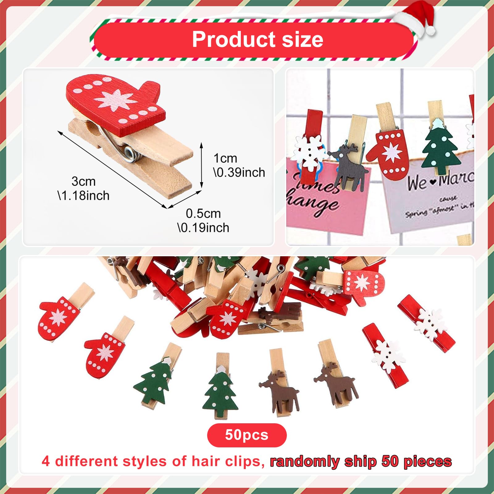 Oh, du fröhliche Bastelzeit! Diese 50 süßen Weihnachtsklammern bringen Festtagsstimmung in deine Deko. Mit nur 4×0,7 cm sind sie perfekt für alle Bastelprojekte!
