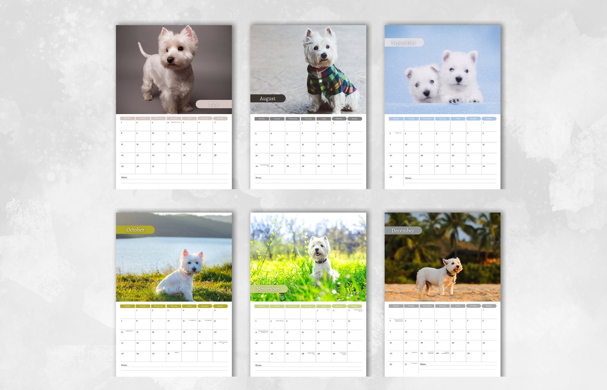 Oh, wie süß! Dieser Westie-Kalender ist einfach herzerwärmend! Mit 12 bezaubernden Vollfarbfotos von den fluffigen weißen Hündchen - da geht jedem Hundeliebhaber das Herz auf. Im großen A3 Format (29,7x42cm) kommen die Bilder richtig gut zur Geltung. Monatsansicht mit viel Platz für Termine und Notizen - praktisch und dekorativ zugleich! Spiralbindung und Aufhänger machen die Handhabung super easy. Ob im Homeoffice, Wohnzimmer oder als Geschenk für Westie-Fans - dieser Kalender bringt das ganze Jahr über gute Laune! Die Fotos zeigen die verspielten Terrier in ihren niedlichsten Posen. Einfach aufhängen und jeden Monat ein neues süßes Motiv genießen! Perfekt für alle, die diese lebhaften Hündchen lieben - egal ob Besitzer oder einfach nur Fan dieser beliebten Rasse!