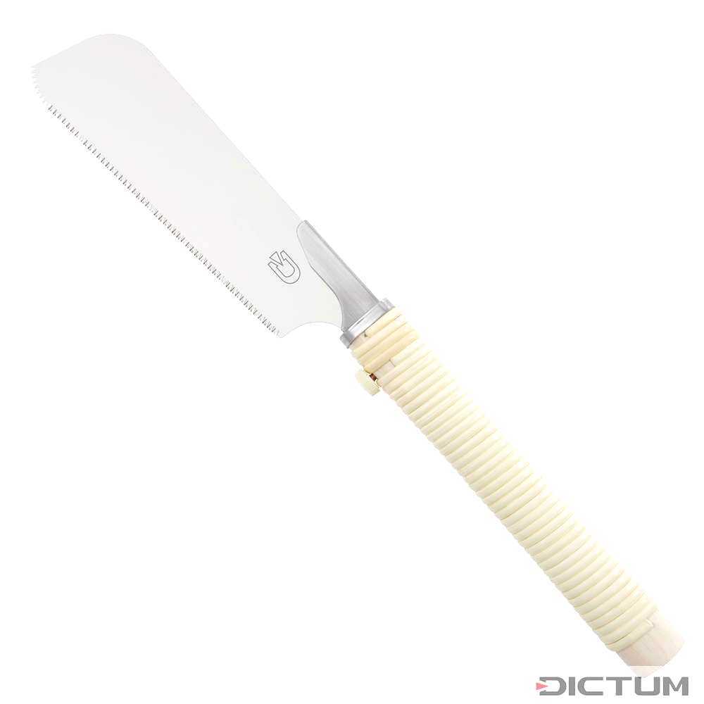 Profiqualität für anspruchsvolle Holzarbeiten! Dieser DICTUM Kataba Sägensatz besteht aus 5 verschiedenen Sägeblättern für unterschiedlichste Materialien: Holz-Feinschnitt, Holz-Grobschnitt, Schichtstoffe, Bambus und Kunststoff. Die Blätter lassen sich blitzschnell wechseln dank cleverem Schnellverschluss. Der Griff aus japanischer Roteiche liegt perfekt in der Hand und die Sägeblätter sind messerscharf. Ob für feine Möbelarbeiten oder grobe Zuschnitte - hier findest du für jede Aufgabe das passende Blatt. Made in Japan mit traditioneller Handwerkskunst. Die Säge arbeitet auf Zug, das gibt mehr Kontrolle und saubere Schnitte. Einmal ausprobieren und du willst keine andere Säge mehr! Perfekt für Tischler, Modellbauer und ambitionierte Heimwerker.