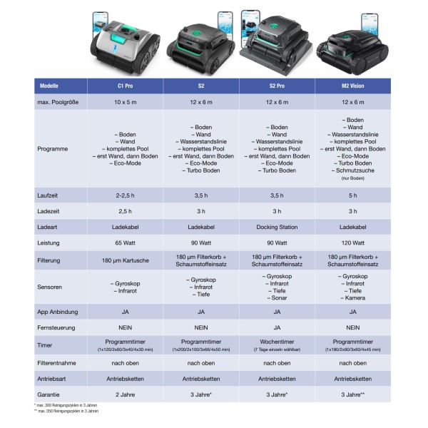 Endlich kein lästiges Poolputzen mehr! Der WYBOT S2 ist der weltweit erste Solar-Poolsauger und ein echtes Technik-Wunder. Stell dir vor: Der Roboter saugt deinen Pool komplett alleine sauber - Wände, Boden, Wasserlinie, alles! Mit 7 Reinigungsmodi und 6 Navigationswegen wischt er wirklich jede Ecke sauber. Das coole Feature: Er lädt sich per Solarstrom auf oder per DC-Ladung wenn mal keine Sonne scheint. Bei schwachem Akku dockt er automatisch an seiner Basis an. Du kannst sogar per App Reinigungspläne für die ganze Woche einstellen - wirklich handsfree! Der 180μm Filterkorb fängt große Blätter, der Schwamm die Mikropartikel. Für Pools bis 300m² perfekt. 2 Jahre Garantie gibt's obendrauf. Einfach einschalten und den Roboter arbeiten lassen - dein Pool wird kristallklar!