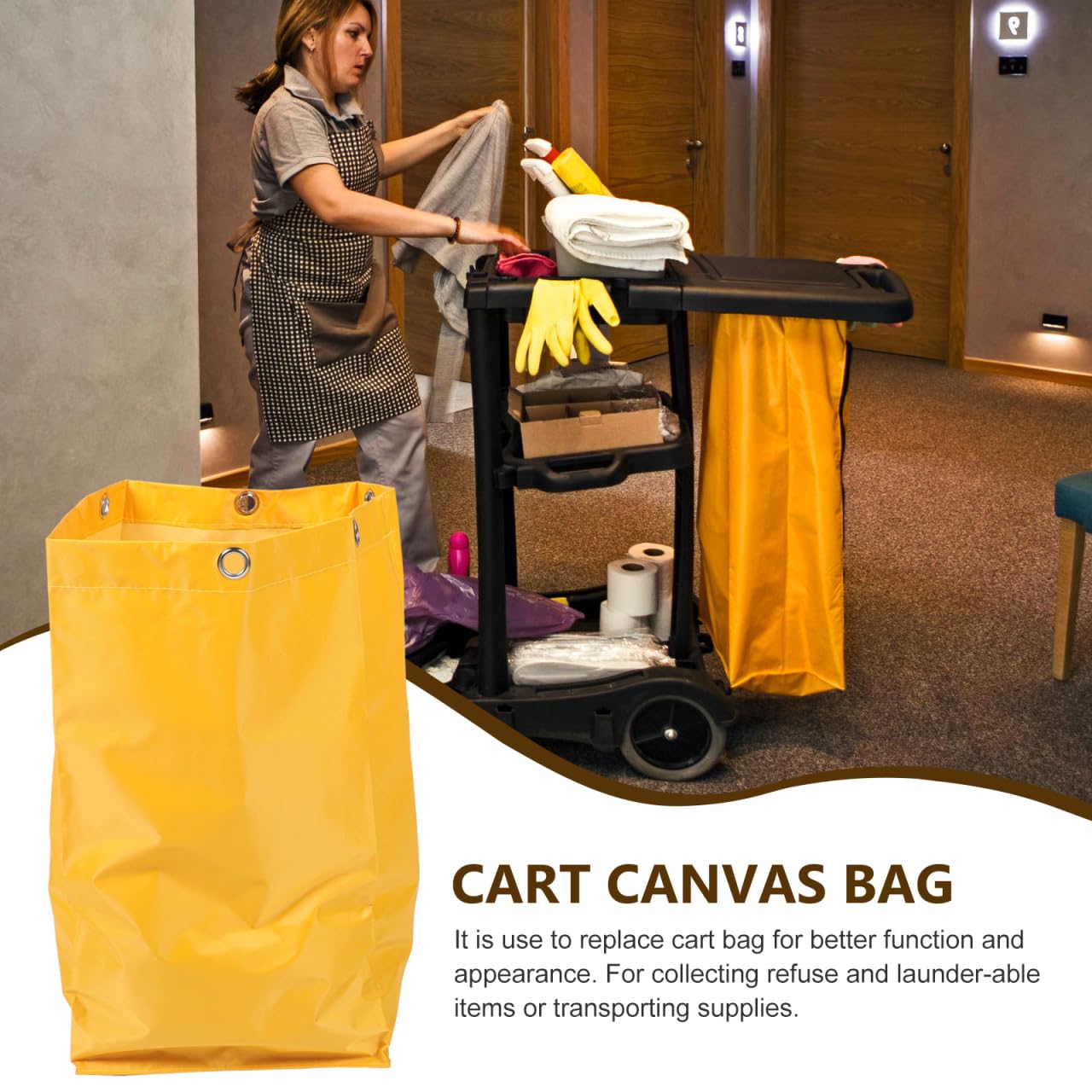 Hausmeister und ReinigungskrĂ€fte, diese Tasche ist euer neuer bester Freund! đ§č\n\nMit den MaĂen 69x40x28cm bietet diese robuste Canvas-Tasche richtig viel Stauraum fĂŒr all eure Reinigungsutensilien. Egal ob Putzmittel, Lappen, Besen oder MĂŒllsĂ€cke - hier findet alles Platz.\n\nAus strapazierfĂ€higem Canvas-Material gefertigt, hĂ€lt diese Tasche so einiges aus. Die verstĂ€rkten NĂ€hte geben zusĂ€tzliche StabilitĂ€t, selbst bei schweren Lasten. Und wenn sie mal dreckig wird? Kein Problem - einfach abwischen und sie sieht wieder aus wie neu.\n\nDas praktische HĂ€ngedesign macht die Montage zum Kinderspiel. Einfach am Reinigungswagen befestigen und schon habt ihr alle Utensilien griffbereit. Kein langes Suchen mehr, kein Chaos - nur noch Ordnung und Effizienz.\n\nWasserdicht ist sie auch noch! So bleiben eure Reinigungsmittel sicher verpackt, selbst wenn's mal nass wird. Perfekt fĂŒr den Einsatz in SchwimmbĂ€dern, Schulen, BĂŒros oder groĂen Wohnanlagen.\n\nIdeal fĂŒr professionelle ReinigungskrĂ€fte, Hausmeister oder auch fĂŒr den privaten Gebrauch zu Hause. Wenn du viele Reinigungsutensilien hast und diese ordentlich verstauen willst, ist diese Tasche genau das Richtige.\n\nPasst zu den meisten Reinigungswagen und ist sofort einsatzbereit. Einfach aufhĂ€ngen, beladen und los geht die Putzaktion! Deine Reinigungsarbeit wird damit gleich viel organisierter und effizienter. âš