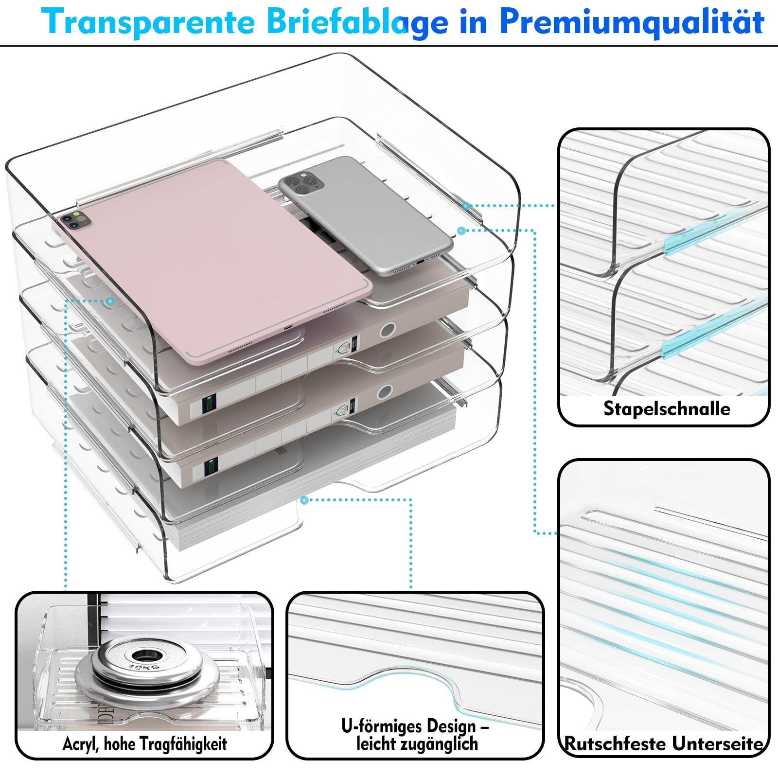 Schluss mit dem Chaos auf dem Schreibtisch! Diese transparente Briefablage von SANRUI bringt endlich Ordnung in deine Dokumente. Aus stabilem 5mm Acryl gefertigt, ist sie robust und kippt nicht um, selbst wenn sie voll beladen ist. Die Maße von 31,5 x 22,2 x 8,7 cm passen perfekt für A4-Unterlagen, Ordner oder auch Bücher. Das Beste: Du kannst mehrere Ablagen einfach übereinander stapeln - ohne kompliziertes Zusammenbauen! So sparst du Platz und behältst trotzdem den Überblick. Durch die klare Acryl-Optik siehst du sofort, was wo liegt. Kein langes Suchen mehr nach wichtigen Papieren! Perfekt fürs Homeoffice, den Büroschreibtisch oder auch für Zuhause, um Rechnungen und Briefe zu sortieren. Die glatte Oberfläche lässt sich leicht abwischen und sieht immer sauber aus. Ob für dich selbst oder als Geschenk für unordentliche Kollegen - mit dieser Ablage wird alles sofort organisierter! Einfach die Papiere reinlegen und dich über mehr Platz und Übersicht freuen.