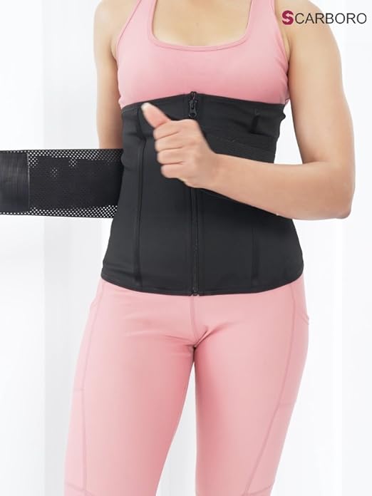 Willst du endlich diese tolle Sanduhr-Figur? Der SCARBORO Taillentrainer hilft dir dabei! Mit dem speziellen Sauna-Effekt schwitzt du mehr und verlierst schneller Wassergewicht. Die 5 Stahlknochen geben deinem Rücken Halt und helfen bei der Haltung. Besonders praktisch: Der doppelte Verstellsystem mit zwei Gürteln passt sich perfekt deiner Taille an. Ob beim Workout, Joggen oder sogar bei der Hausarbeit - du kannst den Trainer den ganzen Tag tragen. Das Neopren-Material ist weich und kratzt nicht. Von Größe S bis 3XL ist für jede Figur was dabei. Tipp: Kombinier den Trainer mit gesunder Ernährung und Bewegung für beste Ergebnisse. Du wirst überrascht sein, wie schnell du Veränderungen siehst! Die blaue Zone zeigt dir übrigens genau, wo du am meisten schwitzt. Einfach mal ausprobieren - deine Traumfigur wartet! Und das Beste: Unter der Kleitung sieht man kaum, dass du ihn trägst.
