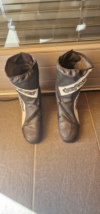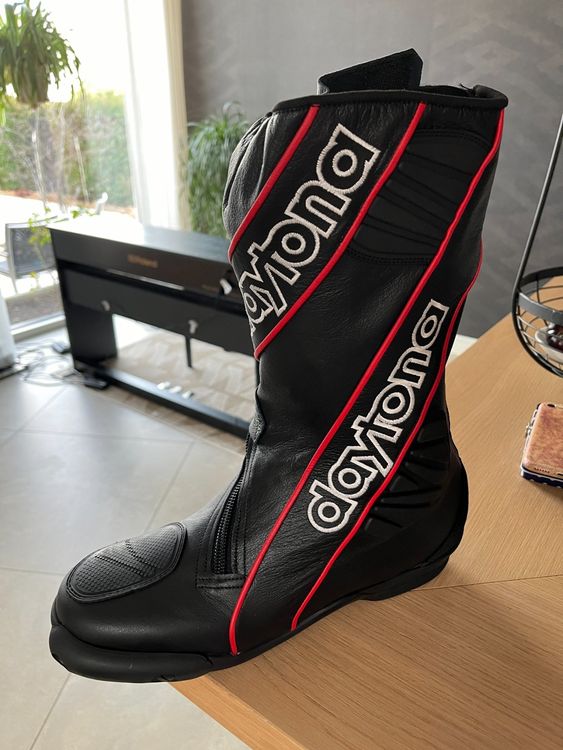 Alter, diese Daytona Motorradstiefel sind ja mal richtig was für echte Biker! Der SECURITY EVO G3 in schwarz ist aus hochwertigem Leder und sieht einfach mega aus. Das coole Pull-On-System macht das An- und Ausziehen super easy - kein langes Schnüren mehr! Die Gummisohle gibt dir perfekten Grip auf den Fußrasten und die flache Absatzform sorgt für stabilen Stand. In Medium-Weite passen sie den meisten Füßen gut. Ob auf der Rennstrecke oder auf der Landstraße - diese Stiefel bieten dir optimalen Schutz und sehen dabei noch richtig sportlich aus. Daytona ist bekannt für Qualität, das merkst du sofort! Deine Füße sind bei jedem Ride sicher geschützt und du fühlst dich einfach wohl darin. Perfekt für alle, die nicht nur sicher, sondern auch stylisch unterwegs sein wollen!