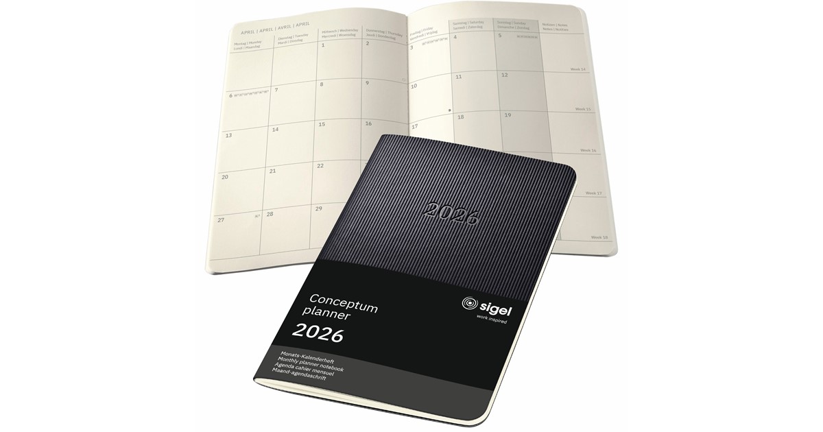 Hey, dieser SIGEL Conceptum Kalender für 2026 ist ja mal richtig schick und praktisch! Im handlichen A5-Format (13,5 x 21 cm) passt der super in jede Tasche oder Aktentasche. Mit 64 Seiten und dem cleveren 2-Seiten-pro-Monat Layout behältst du immer den perfekten Überblick. Das chamoisfarbene Papier ist total hochwertig und mit 80g/m² richtig stabil - und das Beste: Es ist PEFC-zertifiziert und vegan! Die Softwave-Oberfläche fühlt sich super an und die schwarze Farbe sieht einfach elegant aus. Praktische Features gibt's auch: Stiftschlaufe, zwei Zeichenbänder, Archivtasche und dieses coole Quickpocket für wichtige Zettel. Monats- und Jahresübersichten bis 2027 sind dabei, plus Feiertage für Deutschland, Österreich, Schweiz, UK, Frankreich, Belgien und Niederlande. Selbst Ferienübersichten und Zeitzonenkarte findest du im vorderen Teil. SIGEL steht seit 1947 für Qualität und Nachhaltigkeit - das merkt man diesem Kalender einfach an. Ob für Business oder privat, mit diesem Begleiter startest du perfekt organisiert ins Jahr 2026! Einfach ein richtig gutes Gefühl, so einen nachhaltigen und durchdachten Kalender zu nutzen.