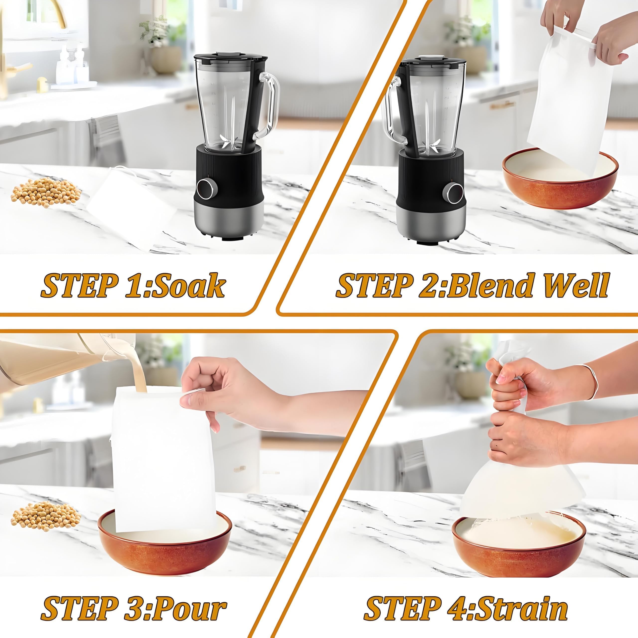 Entdecke die Welt der selbstgemachten Getränke! Mit diesen SINZONeu Nussmilchbeuteln wird Filtern zum Kinderspiel. Das 6-teilige Set enthält feinmaschige Filterbeutel aus Nylon (100 Mikron) und einen praktischen Edelstahlgriff, der sich von 8 auf 15 cm verstellen lässt. So kannst du ganz einfach handsfreies Arbeiten - einfach über eine Schüssel hängen und die Flüssigkeit durchlaufen lassen. Perfekt für deine selbstgemachte Mandelmilch, Haselnussmilch oder andere Nussdrinks. Aber das ist noch nicht alles: Die Beutel eignen sich auch super für Kefir, Cold Brew Kaffee, klare Brühen, Kräutertees, Säfte oder sogar für die Käseherstellung. Einfach den Griff auf den Rand deines Gefäßes klemmen, Beutel einhängen und losgeht's! Die feine Mesh-Struktur filtert selbst kleinste Partikel heraus, sodass du kristallklare Flüssigkeiten erhältst. Nach Gebrauch einfach in der Spülmaschine reinigen (am besten im Wäschesack) und schon sind sie bereit für den nächsten Einsatz. Eine nachhaltige Alternative zu Einweg-Filtern - jedes Set spart bis zu 200 Wegwerfbeutel! Ob für vegane Rezepte, DIY-Kosmetik oder die Zubereitung von Babybrei - diese Filterbeutel sind echte Alleskönner in deiner Küche.