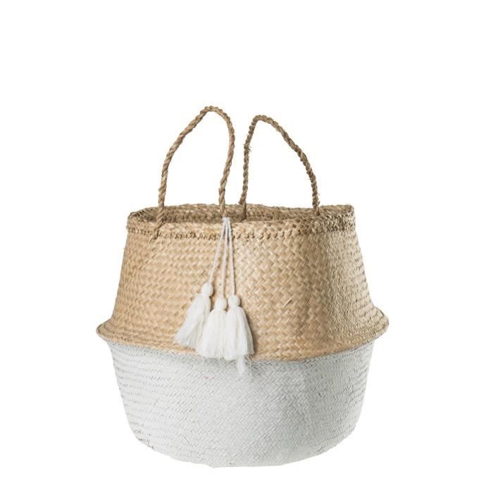 Natürlicher Charme für dein Zuhause! Dieser handgeflochtene Schilfkorb von SKLUM in schönem Weiß bringt mediterranes Flair in deine vier Wände. Mit 35x32cm Maßen und praktischen Griffen ideal für Aufbewahrung oder als Deko-Element. Jeder Korb ist ein Unikat - durch die handwerkliche Herstellung hat jedes Stück seine eigenen Charakteristika. Der farbige Boden mit dekorativen Quasten gibt dem Korb eine besondere Note. Perfekt für Wohnzimmer, Schlafzimmer, Essbereich oder Terrasse. Aus 100% natürlichem Schilf - umweltfreundlich und nachhaltig. Auch für den Außenbereich geeignet, solange er vor direkter Witterung geschützt ist. Ein vielseitiges Accessoire, das Stil und Funktionalität perfekt verbindet!