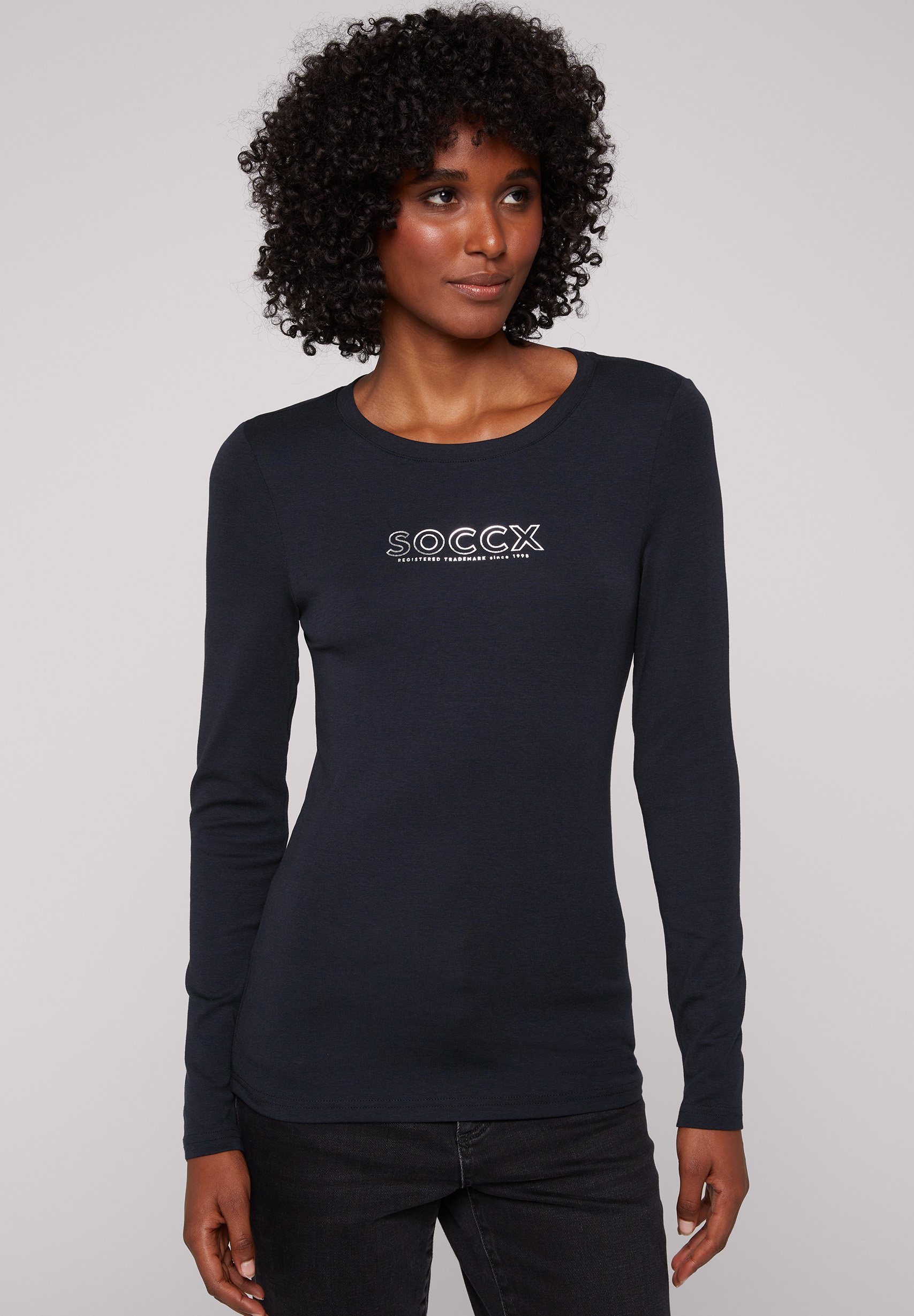 SOCCX Damen Shirt Materialmix Mit Folienprint - Oversized Fit XXXL