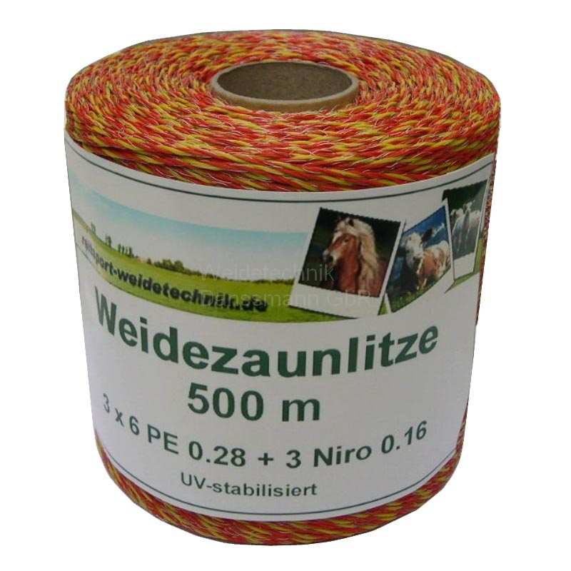 Perfekter Schutz für deine Weide! Diese robuste Elektrozaunlitze von SOLID WIRE ist ein echter Allrounder. Mit 500 Metern Länge und 3 mm Durchmesser ist sie ideal für mittlere bis lange Zäune. Die drei Zinkleiterdrähte (je 0,30 mm) sorgen für exzellente Leitfähigkeit mit nur 0,62 Ohm/m Widerstand - da kommt der Strom auch am Zaunende noch kräftig an! Besonders praktisch: Die blaue Farbe ist für Wildtiere wie Wildschweine, Hirsche und Wölfe gut sichtbar, aber auch deine Rinder, Schafe oder Ziegen erkennen den Zaun problemlos. Mit einer Reißfestigkeit von bis zu 150 kg hält die Litze so einiges aus. Und das beste: Sie ist UV-beständig und hält auch bei schlechtem Wetter - dafür gibt's sogar 3 Jahre Garantie! Die flexible Litze minimiert die Verletzungsgefahr für Tiere. Wichtig: Bitte keine Knoten machen, sondern spezielle Verbinder verwenden, sonst können die Leiterdrähte durchbrennen. Einfach verlegen und sich über einen zuverlässigen Schutz freuen!