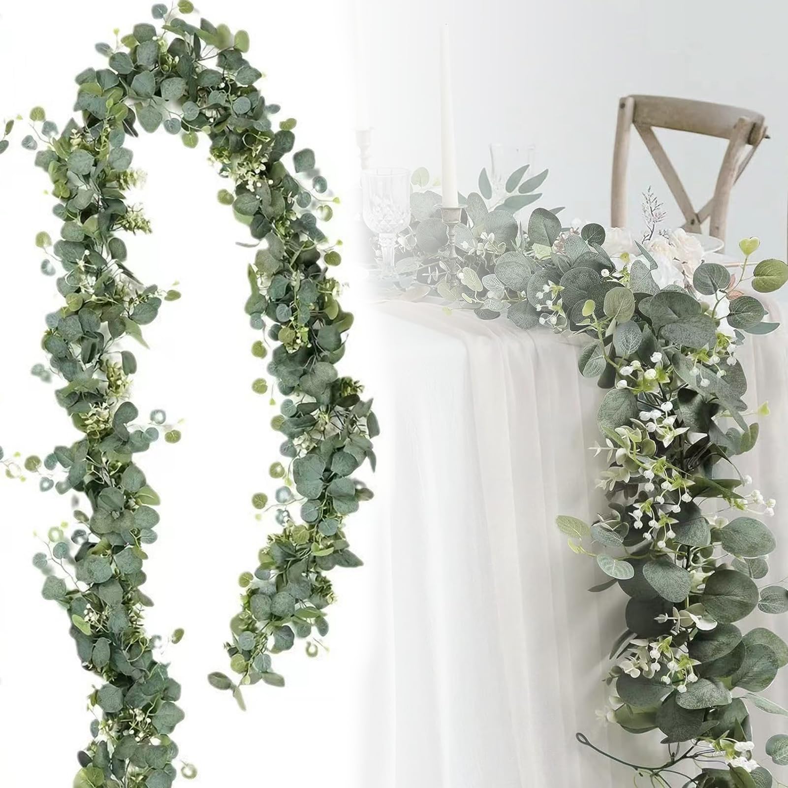 Traumhafte Boho-Deko für dein Zuhause oder deine Hochzeit! Diese 1,8m lange Eukalyptus-Girlande von STANPET sieht so natürlich aus, dass man kaum glauben kann, sie ist künstlich. Mit zarten grünen Blättern und dekorativen weißen Blüten bringt sie frischen, natürlichen Charme in jeden Raum.