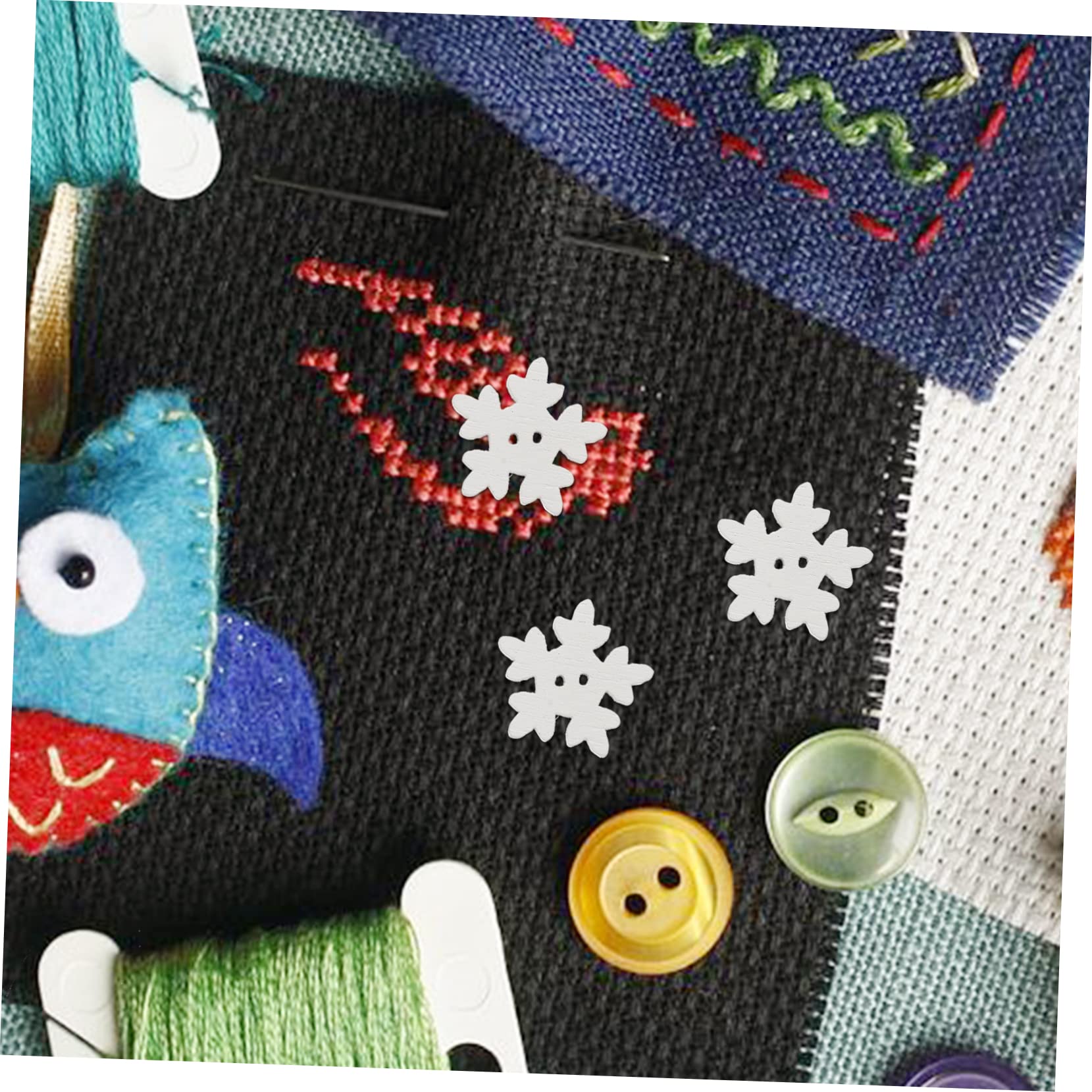 Bastelfreude zur Weihnachtszeit! Dieses STOBOK Set mit 200 weißen Holz-Knöpfen in niedlicher Schneeflocken-Form ist perfekt für alle kreativen Weihnachtsprojekte. Jeder Knopf ist etwa 2,7x2,7cm groß und hat die typische Weihnachts-Cartoon-Form.