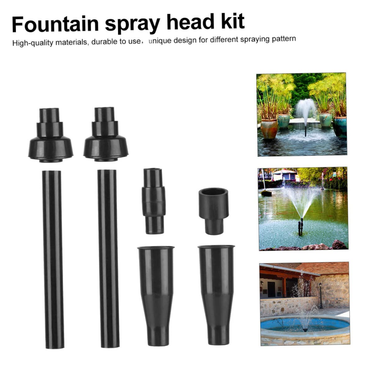 Im Set enthalten: 2 verschiedene Düsen und 3 Verlängerungsstangen. So kannst du die Höhe und Form deiner Wasserfontänen ganz nach Wunsch einstellen. Die schwarzen ABS-Düsen sind witterungsbeständig und halten draußen problemlos stand.