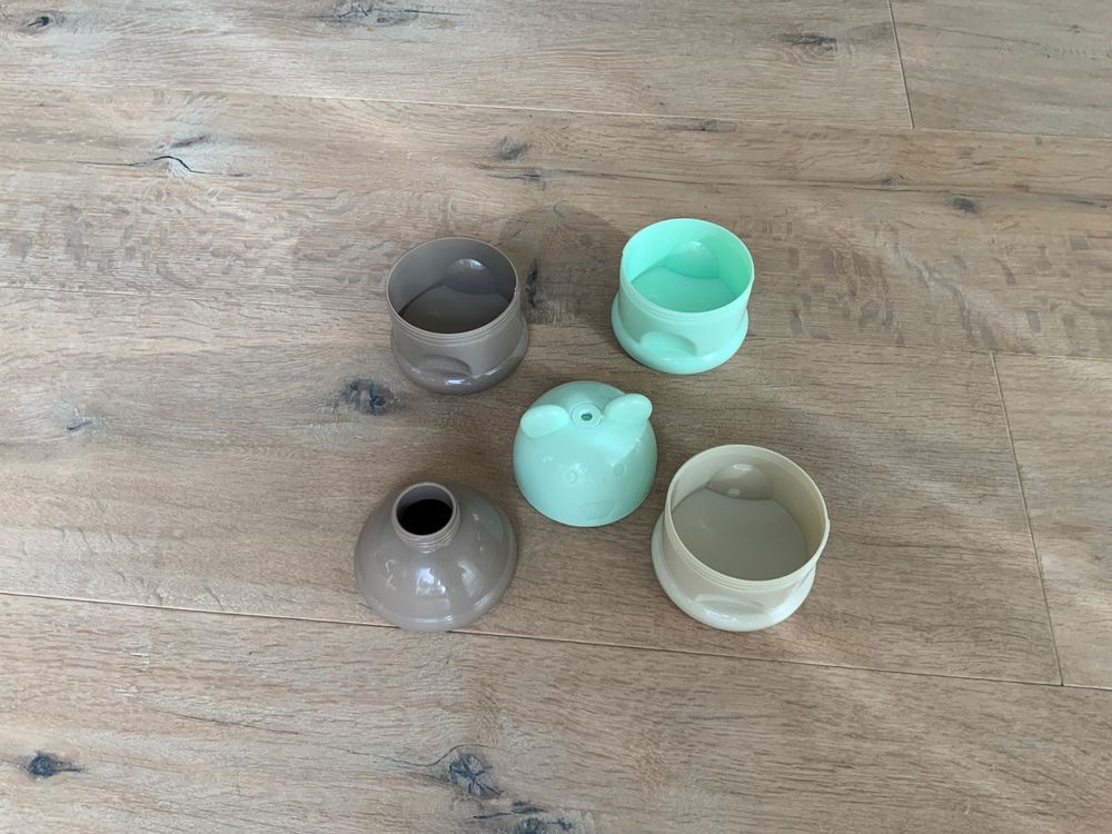 Für alle jungen Eltern: Dieser SacJkt Milchpulver-Portionierer ist ein echter Lebensretter! Du kriegst 3 Boxen in frischen Farben (grün, rosa, beige), die super praktisch sind. Jede Box hat 3 Fächer, sodass du verschiedene Sachen trennen kannst - zum Beispiel Milchpulver für unterschiedliche Mahlzeiten, oder auch Snacks, Obst, oder was dein Kleines sonst so mag. Das Material ist lebensmittelechtes PP, BPA-frei, also total unbedenklich für dein Baby. Der Deckel hat ein cleveres Dreh-Design - du musst ihn nicht abnehmen, sondern kannst einfach von einem Fach zum nächsten drehen. So geht nichts daneben, und die Abdichtung ist so gut, dass nichts ausläuft oder feucht wird. Die Box ist mit 9,3x8,2 cm schön kompakt, passt also easy in jede Wickeltasche. Ob für unterwegs, im Auto, oder zu Hause - du hast immer die richtige Portion griffbereit. Und die trichterförmige Öffnung macht das Ausgießen super einfach, ohne dass was daneben geht. Einfach nach Gebrauch mit Wasser ausspülen, und schon ist sie wieder sauber. Einfach genial für den stressigen Eltern-Alltag!