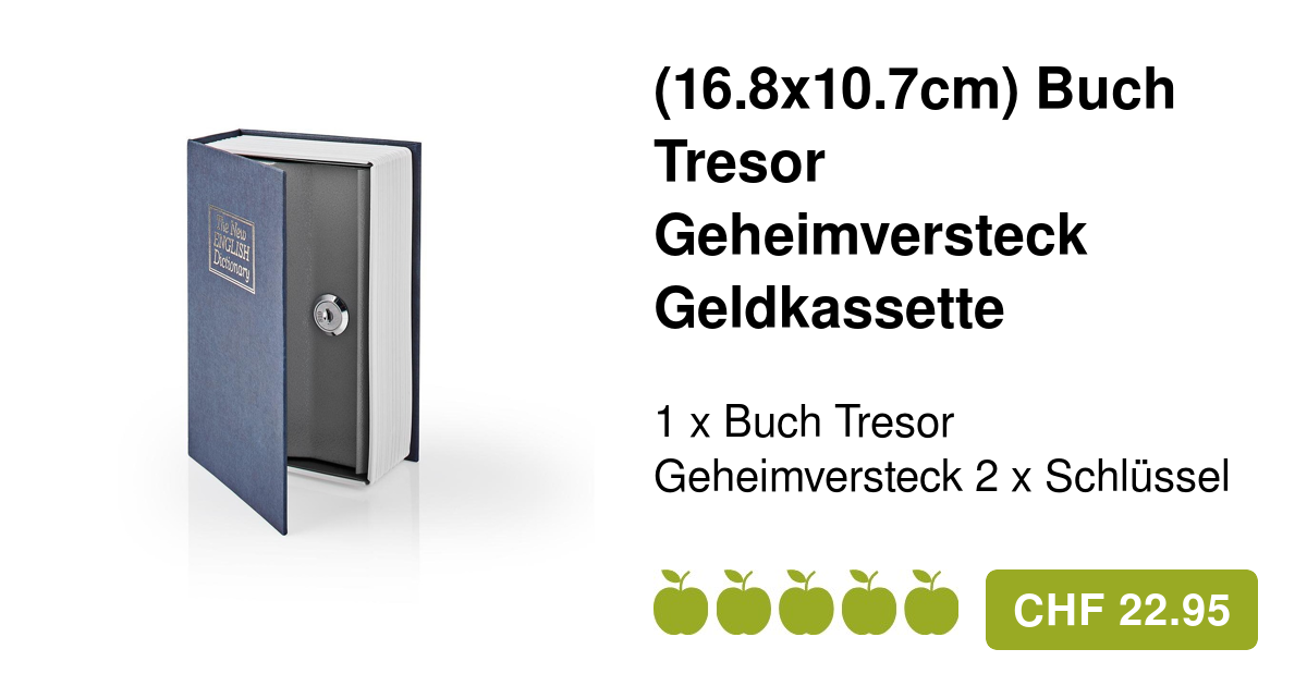 Der geniale Safe, den niemand vermutet! Dieses täuschend echte Buch mit dezentem FLEURS-Aufdruck verbirgt im Inneren einen sicheren Tresor. Maße: 16x5,5x24,5 cm (innen 14x4x23 cm). Perfekt für Geld, Schmuck oder wichtige Dokumente. Mit 2 Schlüsseln. Ideal für Zuhause oder im Urlaub - einfach ins Bücherregal stellen und deine Wertsachen sind sicher versteckt. Sieht aus wie ein normales Buch, ist aber dein persönlicher Safe!