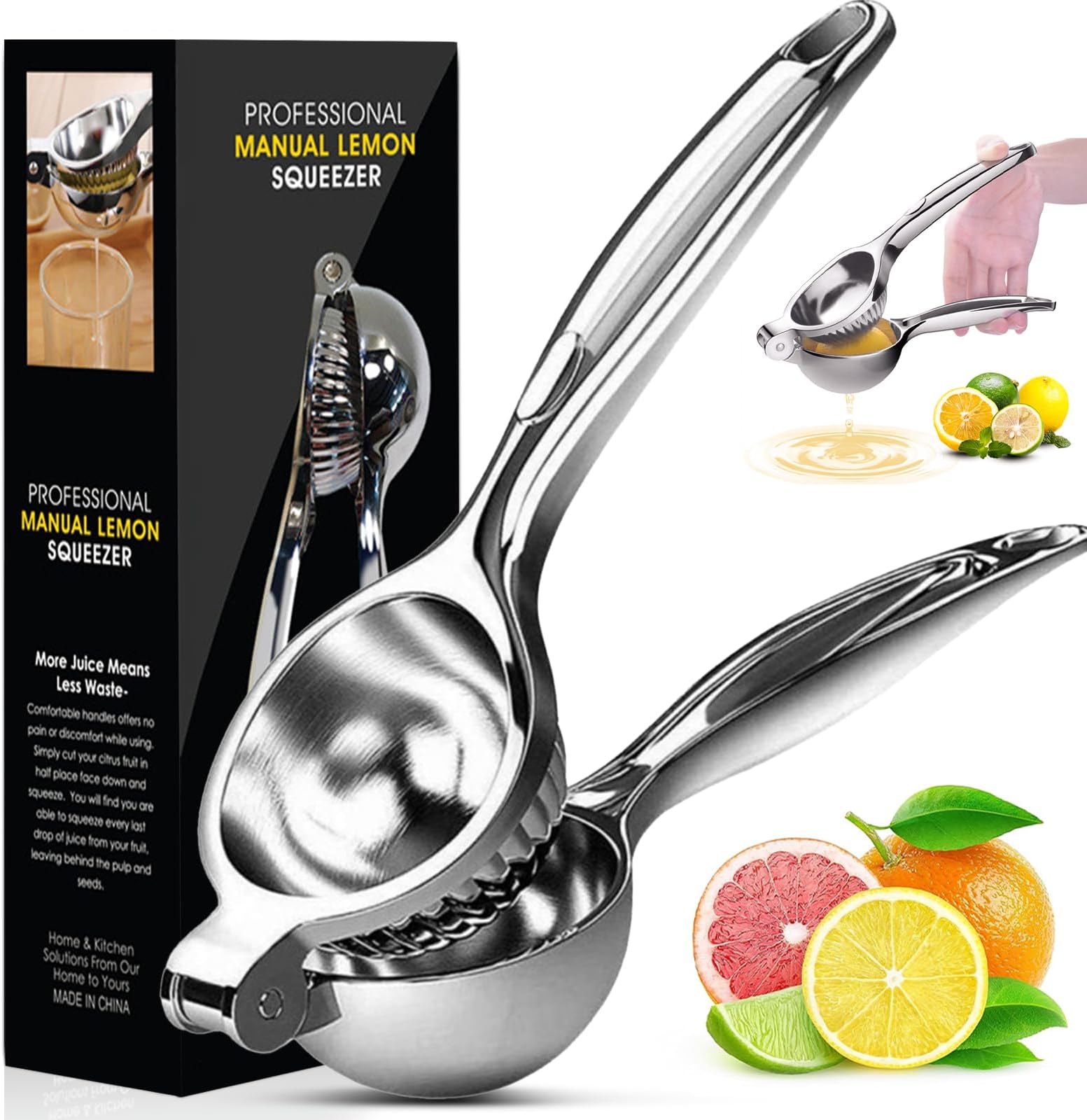 Frisch gepresster Zitronensaft war noch nie so einfach! Diese robuste Handpresse aus Zinklegierung macht das Auspressen von Zitronen, Limetten und Orangen zum Kinderspiel. Mit 7 cm Durchmesser passt sie für die meisten Zitrusfrüchte.
