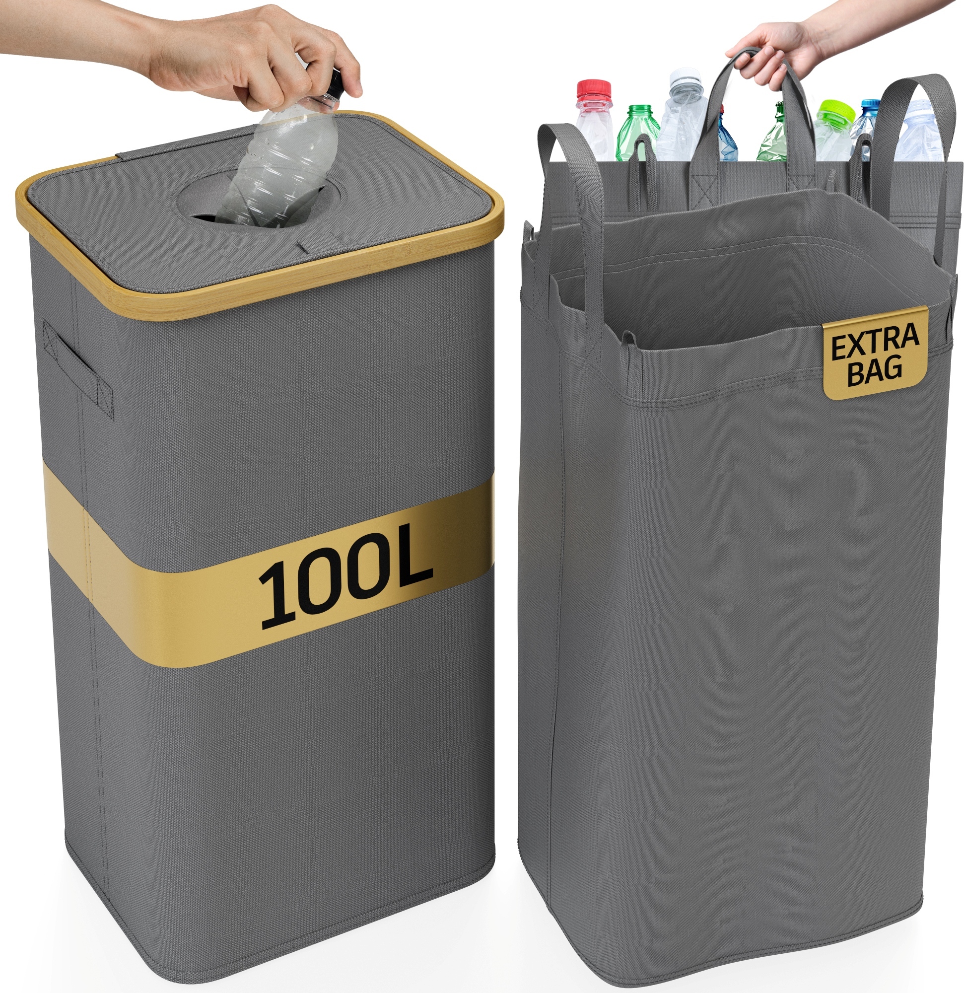 • Marsred Pfandflaschen Sammelbehälter 100L - Mit 2 Innentaschen & Deckel