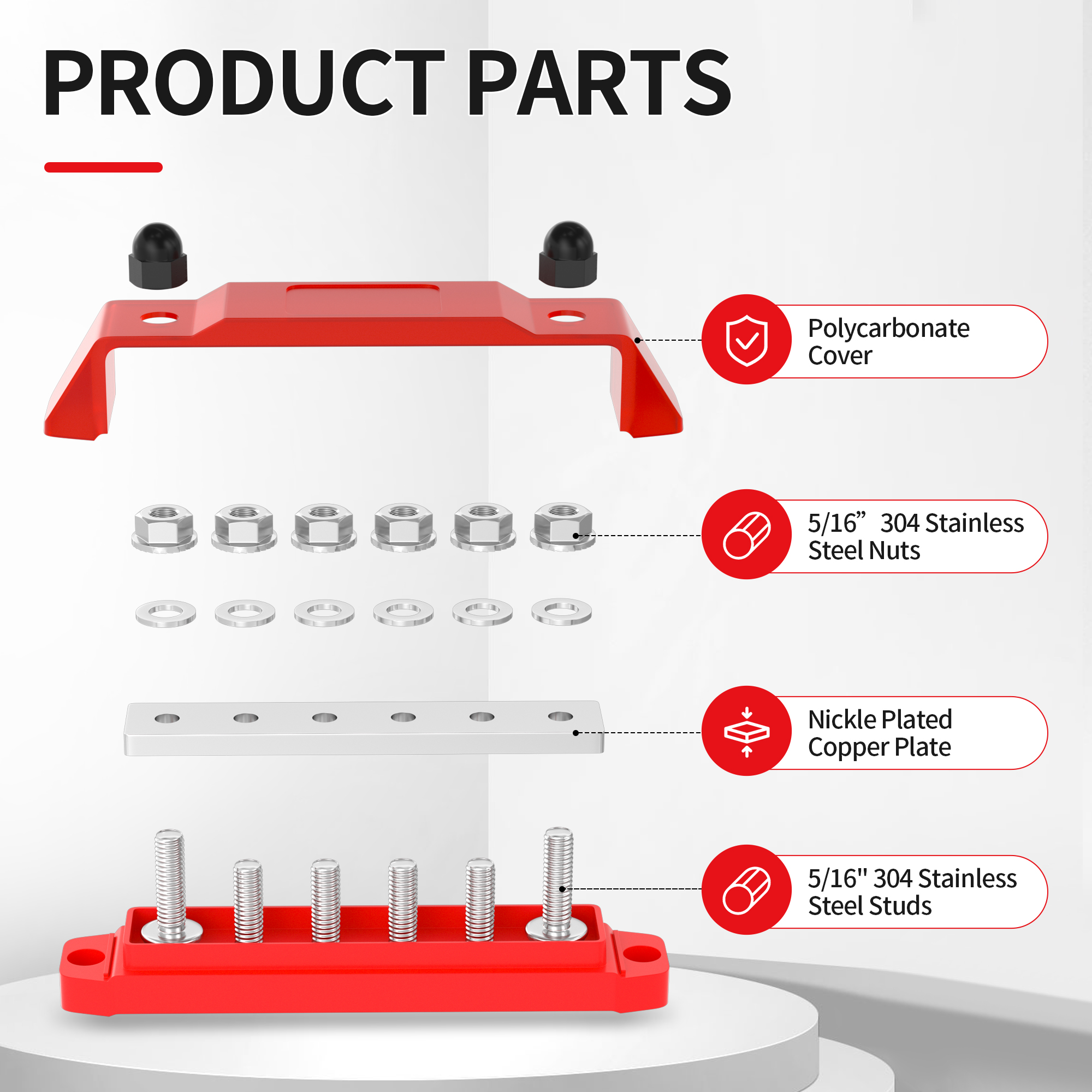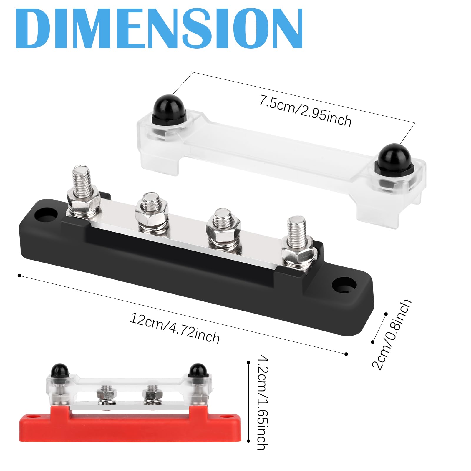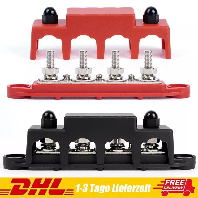 Professionelle Stromverteilung für dein Fahrzeug! 2 Verteilerblöcke in rot/schwarz, je mit 2 M6 und 8 M4 Anschlüssen. Handelt bis 150A DC bei 48V - perfekt für Wohnmobile, Solaranlagen, Autos und Boote. Aus feuerfestem ABS, mit verzinnten Kupferleisten für beste Leitfähigkeit. Die durchsichtige Abdeckung schützt vor Staub und Berührung. Macht Kabelbäume ordentlich und organisiert. Einfache Installation, hält alles sauber und sicher unter der Haube oder im Schaltschrank!