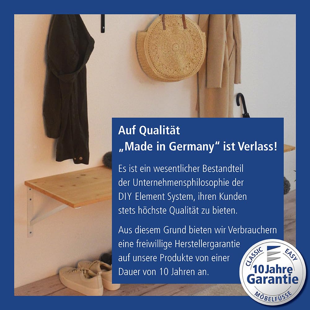 Robuste Regallösung made in Germany! Diese stabilen Wandkonsosen aus Stahl tragen bis zu 150 kg pro Paar - ideal für schwere Regale in Garage, Hobbyraum oder Keller. \\n\\nMit den Maßen 210x300 mm passen die Konsolen zu den meisten Standard-Regalböden. Die weiße Pulverbeschichtung sieht nicht nur gut aus, sondern schützt auch vor Rost. \\n\\nEinfache Montage an der Wand - schon entsteht wertvoller Stauraum für Werkzeuge, Vorräte oder Dekoration. Die Konsolen sind vielseitig einsetzbar und passen sich jedem Raum an. \\n\\nTeil des DIY ELEMENT SYSTEM Sortiments für individuelle Regallösungen. Deutsche Qualität für jahrelange zuverlässige Nutzung. Im Set mit 2 Konsolen - perfekt für ein komplettes Regal!