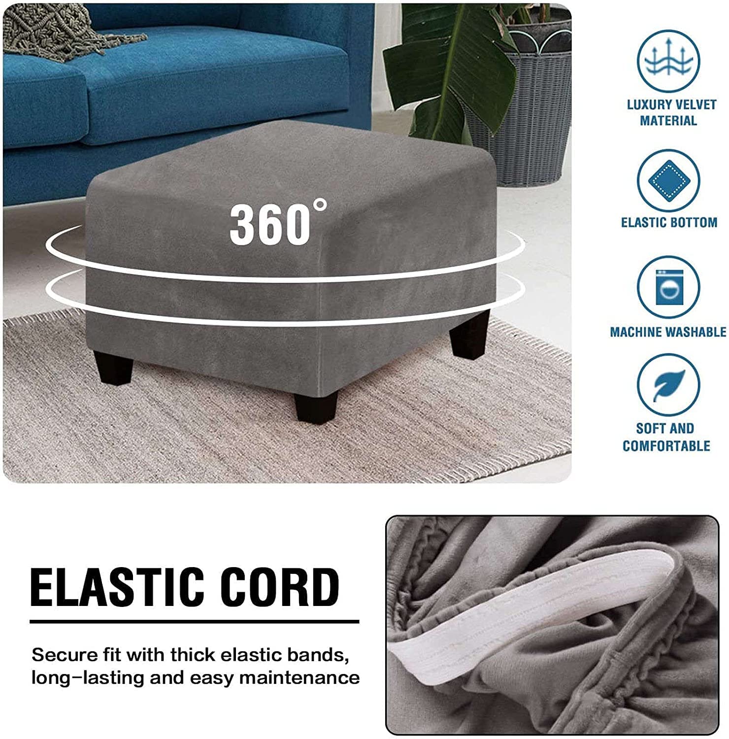 Gib deinen Möbeln einen frischen Look! Dieser weiche Samt-Schonbezug passt sich perfekt deiner Ottomane, deinem Hocker oder deiner Sitzbank an. Dank des dehnbaren Stretch-Stoffs sitzt er wie angegossen und verrutscht nicht. Erhältlich in Größe Large (Länge 68-106 cm, Breite 50-76 cm, Höhe 33-50 cm) - misst am besten vorher dein Möbelstück aus, um die perfekte Passform zu garantieren. Der Bezug schützt vor Tierhaaren, Flecken und Verschmutzungen und ist dabei ganz einfach in der Maschine waschbar (kalt, nicht bleichen, schonend trocknen). Kein Bügeln nötig! So hast du immer einen frischen Look in deinem Wohnzimmer, Schlafzimmer oder Büro. Perfekt auch für Restaurants, Hotels oder Feiern. Der rutschfeste Boden hält den Bezug sicher an Ort und Stelle. Ein schneller und günstiger Weg, um alte Möbel aufzufrischen oder neue vor Abnutzung zu schützen. Einfach überziehen und schon sieht alles wie neu aus!