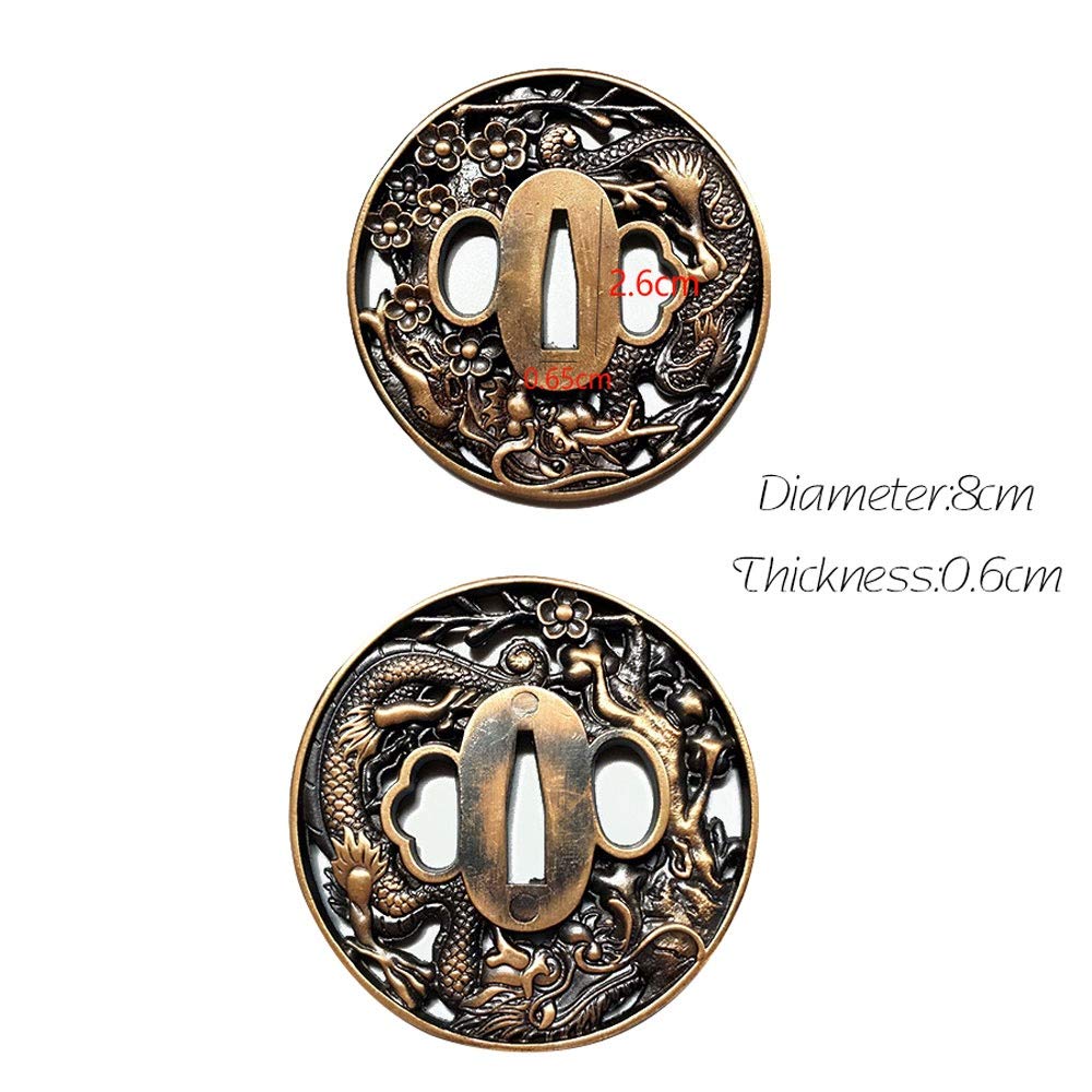 Für Schwert-Enthusiasten und Sammler: Diese Tsuba-Handschütze aus Metalllegierung sind perfekt für japanische Schwerter wie Katana, Wakizashi oder Tanto! Die Tsuba (meist rund oder quadratisch) schützt deine Hand davor, auf die Klinge zu rutschen, und verbessert gleichzeitig die Balance der Waffe. Jedes Stück ist fein dekoriert und einzigartig – ideal zum Sammeln, als Erbstück oder für DIY-Schwertprojekte. Hergestellt von traditionellen Handwerkern, kombiniert diese Tsuba Funktionalität mit kunstvollem Design. Einfach montieren, ausprobieren und sich über die verbesserte Handhabung freuen. Ob für Kampfkunst, Cosplay oder als Dekoration – diese Tsuba macht dein Schwert komplett und authentisch. Tauche ein in die Welt der Samurai und genieße die Handwerkskunst!