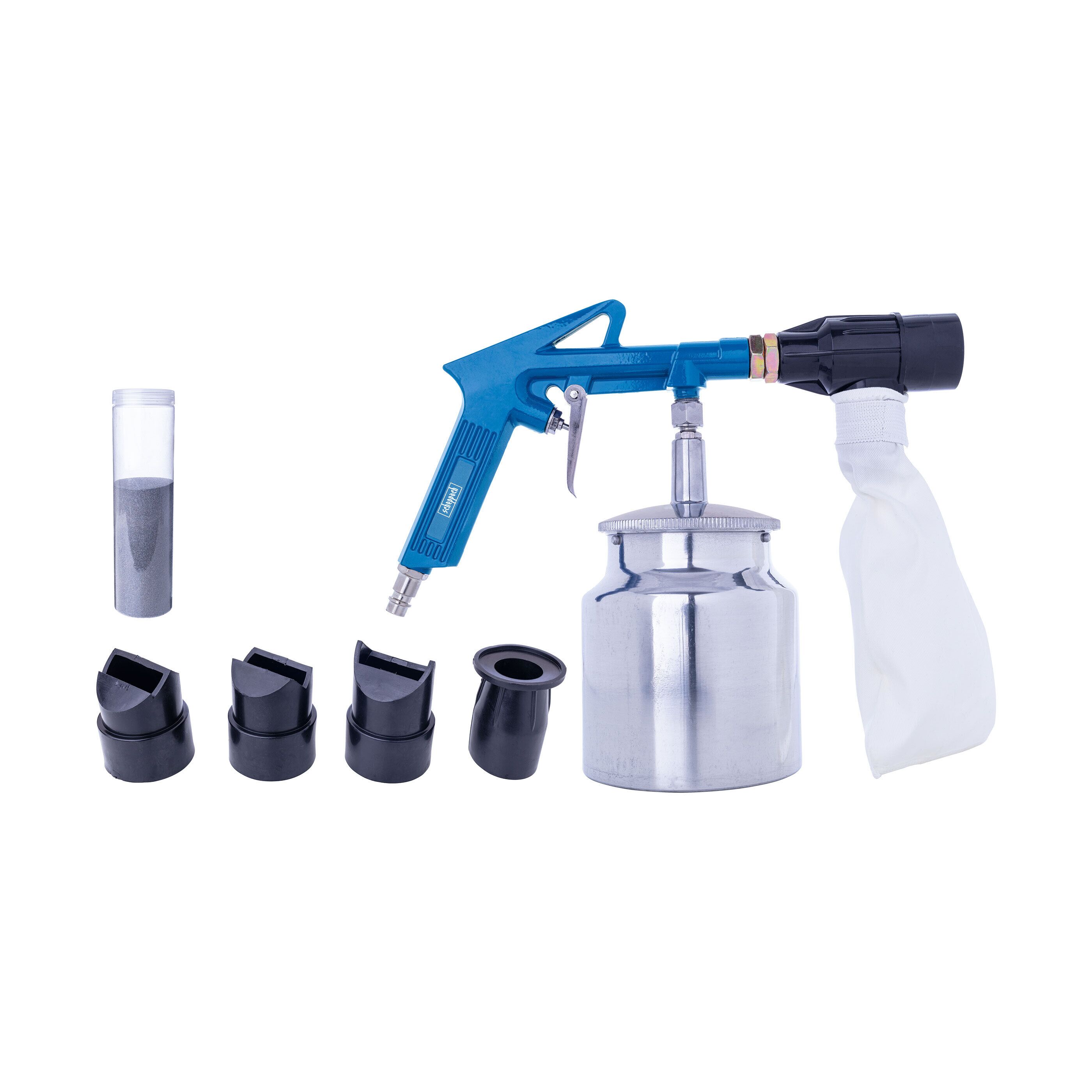Perfekt für Renovierungsarbeiten! Diese Sandstrahlpistole aus Aluminium entfernt Rost, Lack und Kalkrückstände super effektiv. Einfach an den Kompressor anschließen und loslegen! Die Düse ist austauschbar - einfach rausschrauben und wechseln. Ideal für Autos, Whirlpools, Metallteile... Einfach die Oberfläche aus 45-90cm Entfernung anstrahlen. Leicht und handlich - liegt gut in der Hand. Aber Achtung: Immer Schutzbrille tragen! Ob für Hobby oder Profession - mit dieser Pistole kriegst du jede Oberfläche wieder sauber. Einfach anschließen, zielen und strahlen - das Ergebnis wird dich überzeugen!